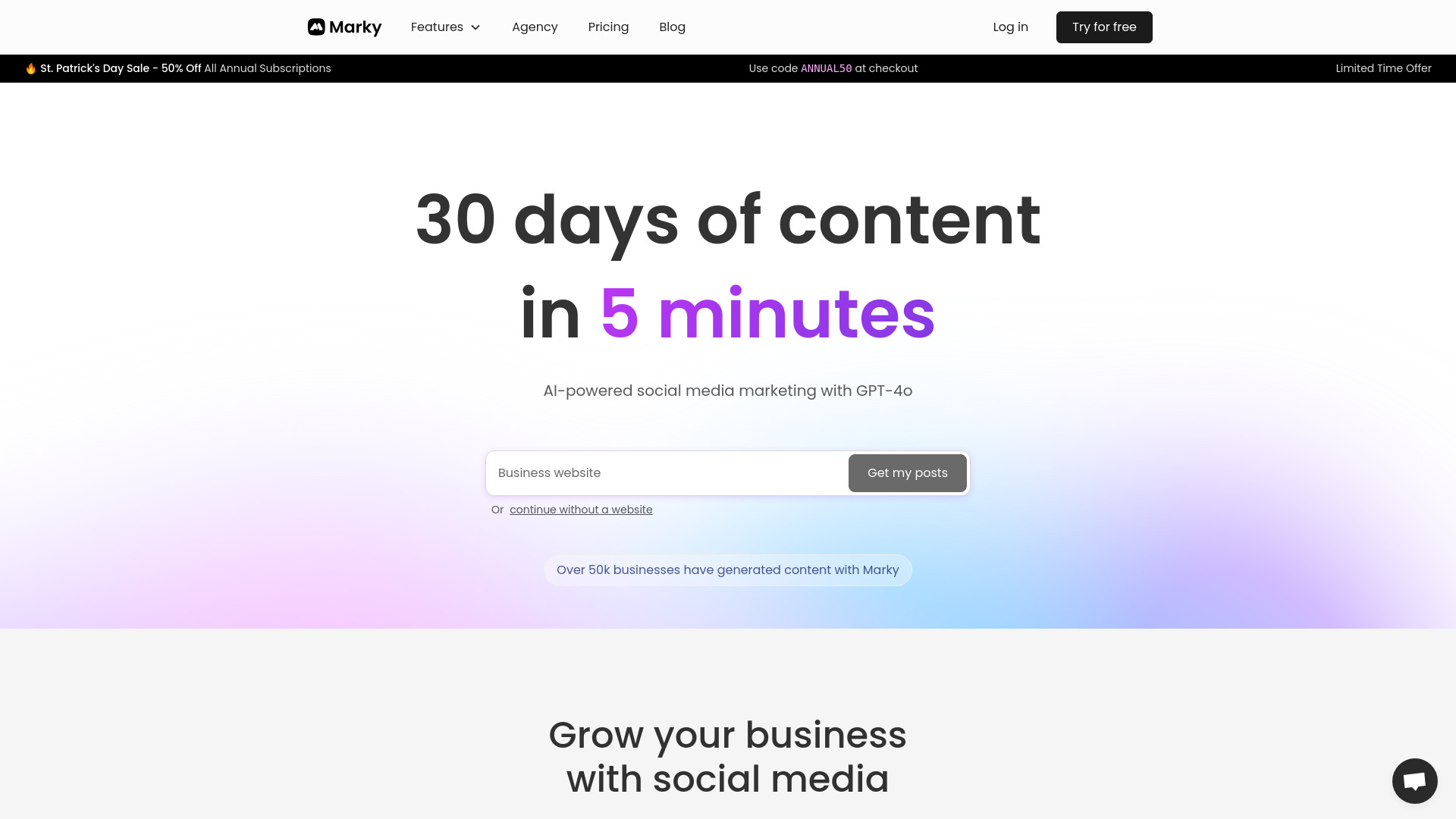 AI social media marketing tool for content generation, scheduling, and design.