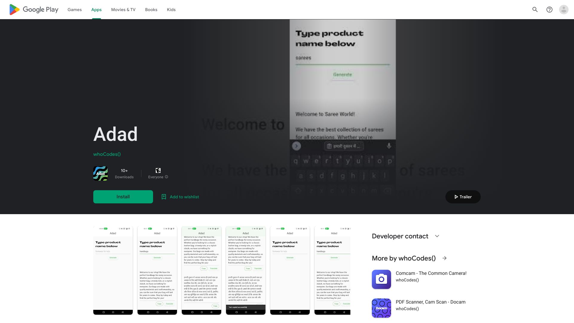 Adad uses AI to generate product descriptions and ad copies, translatable to Hindi.