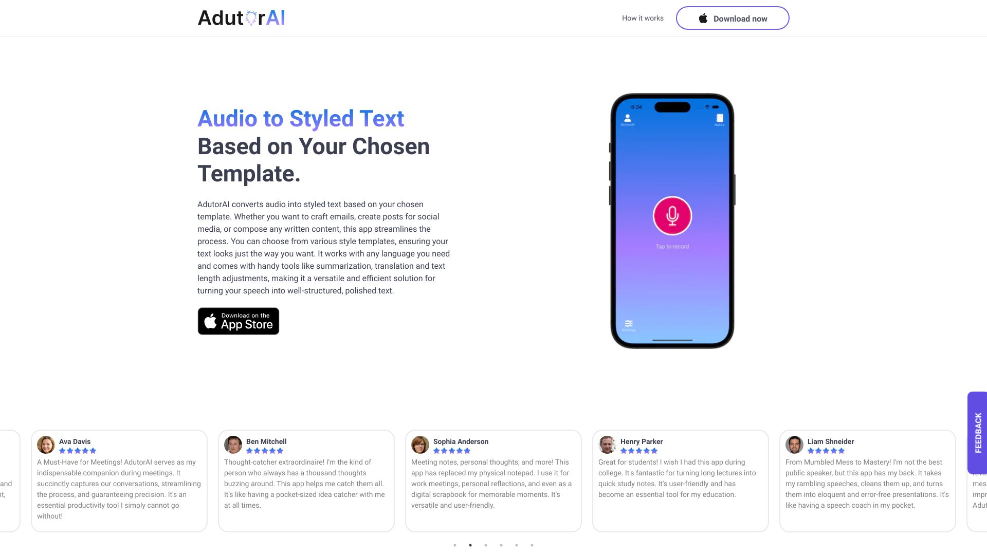 AI tool to convert speech to clear, structured text with style customization.