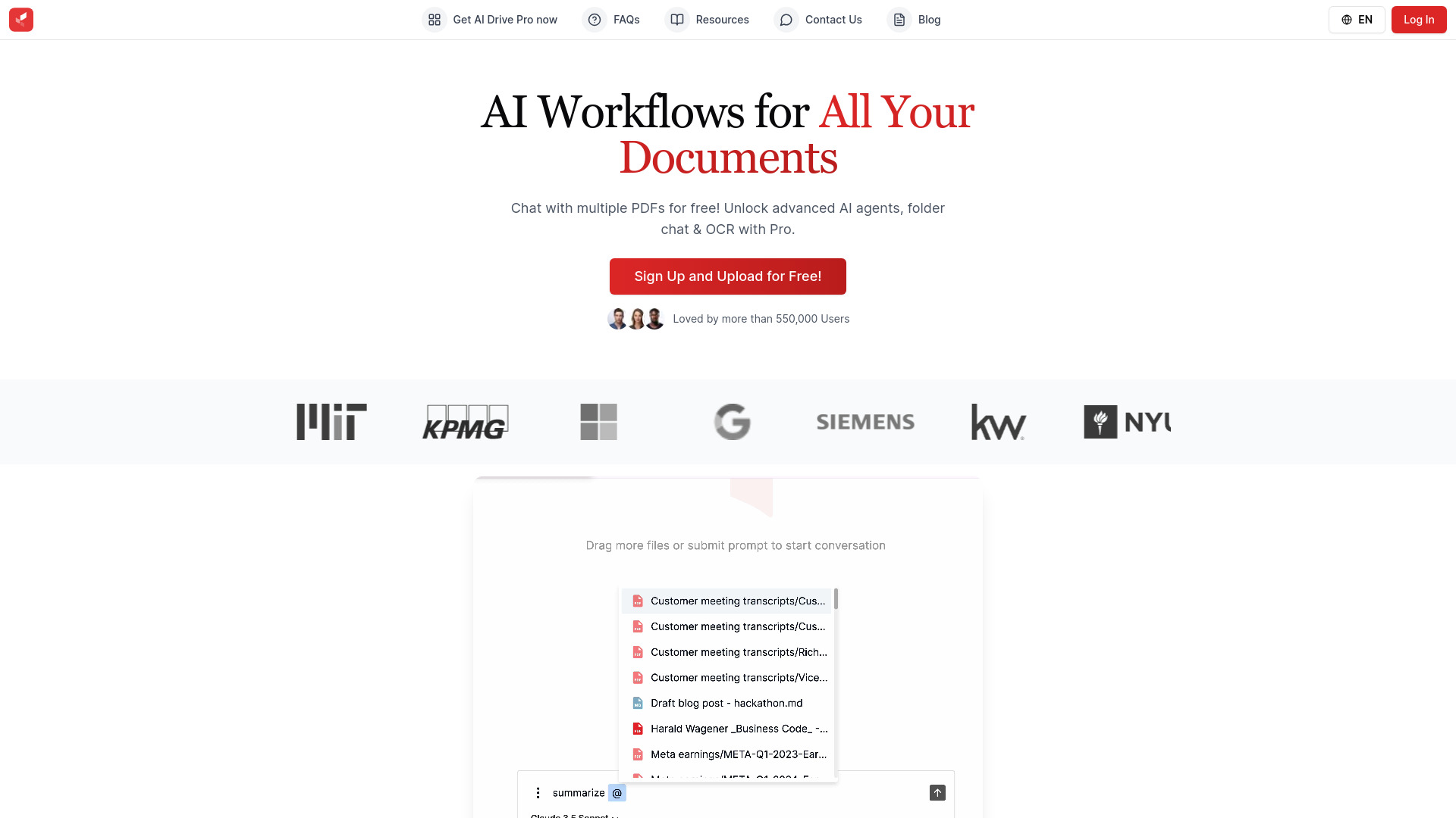 AI-powered cloud storage for summarizing, chatting with, and organizing files using advanced AI models.