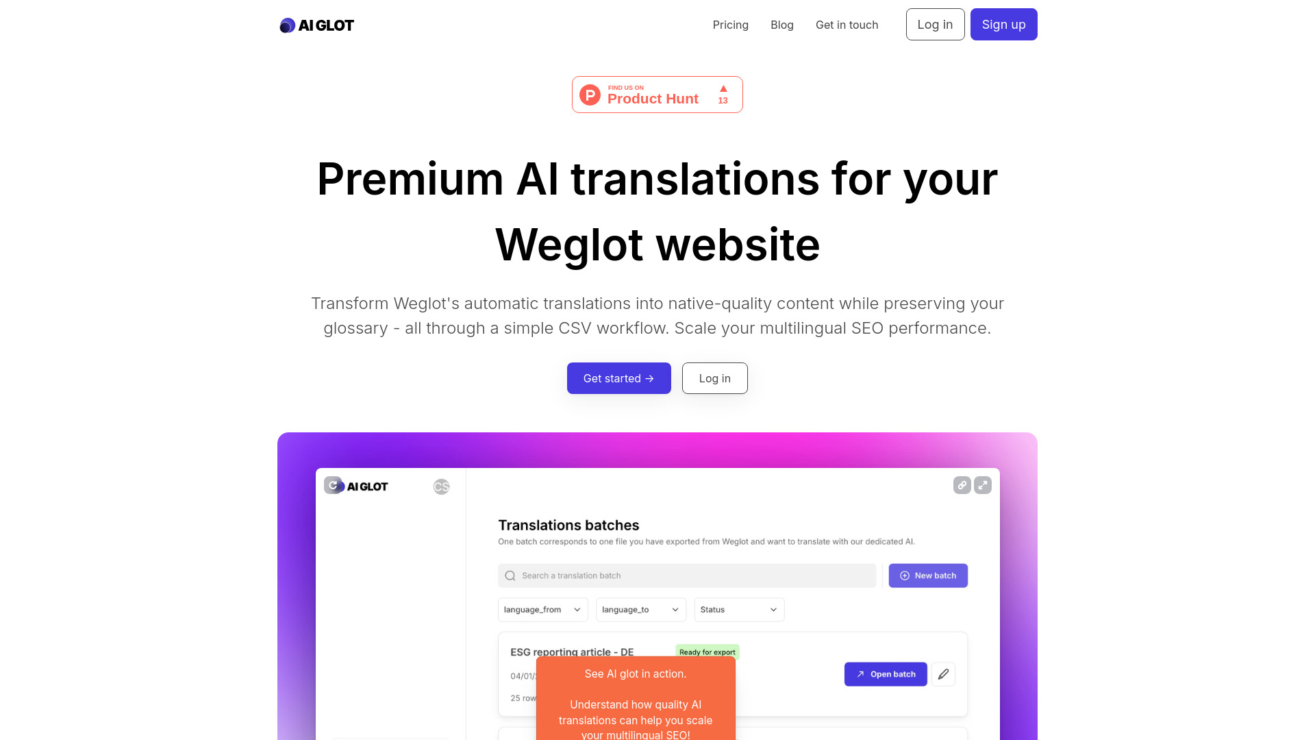 AI-powered translation tool for Weglot users, enhancing translation quality and brand consistency.