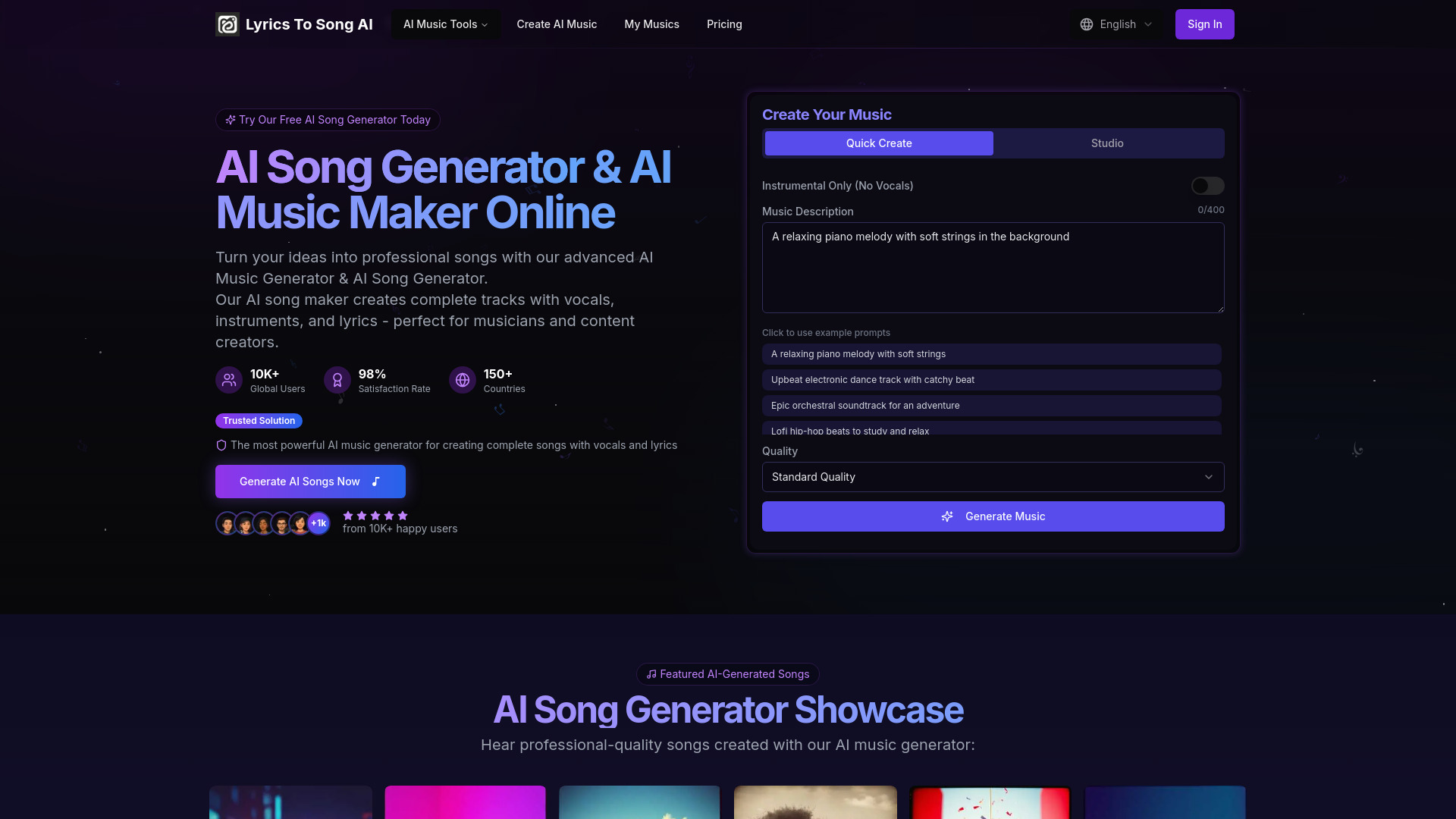 AI music and song generator for creating professional-quality songs from text or lyrics.