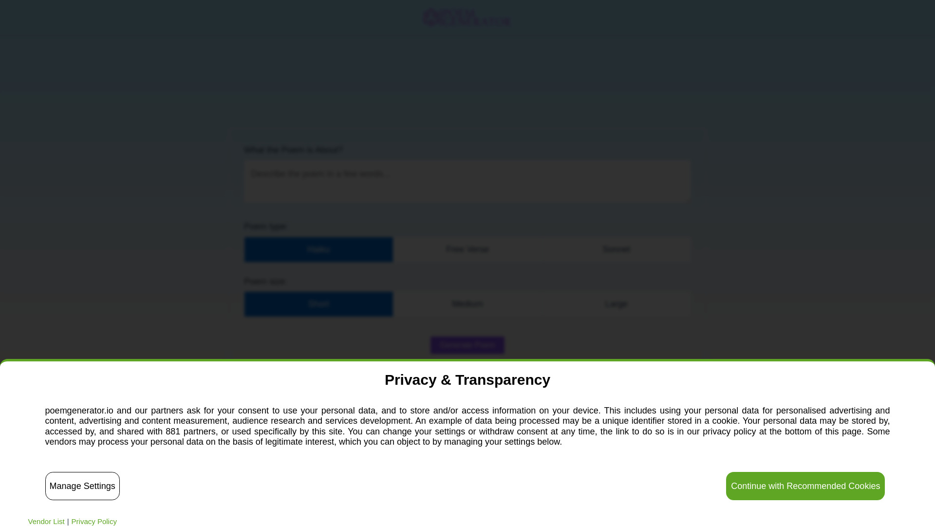 AI-powered tool for generating poems effortlessly with customizable parameters.