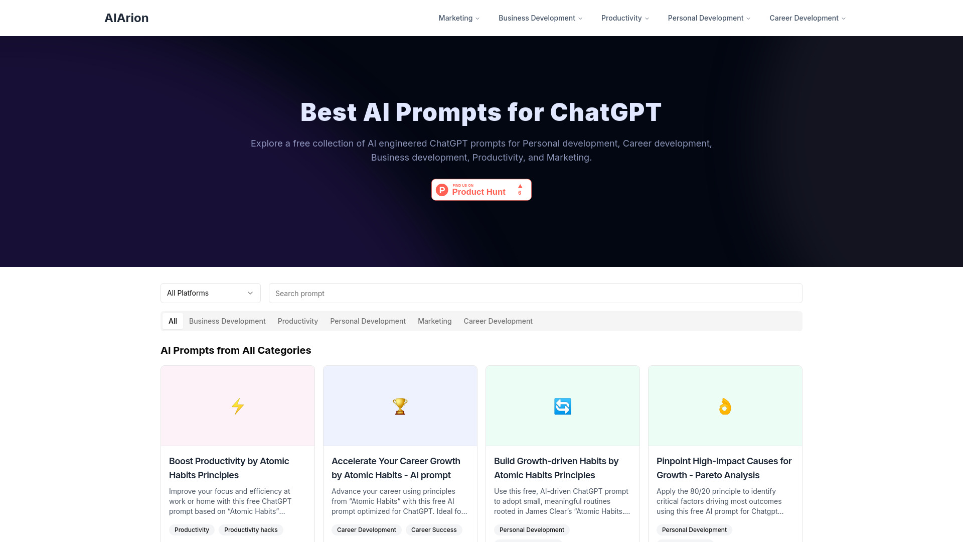 AIArion offers free AI prompts for ChatGPT to enhance personal and professional growth.