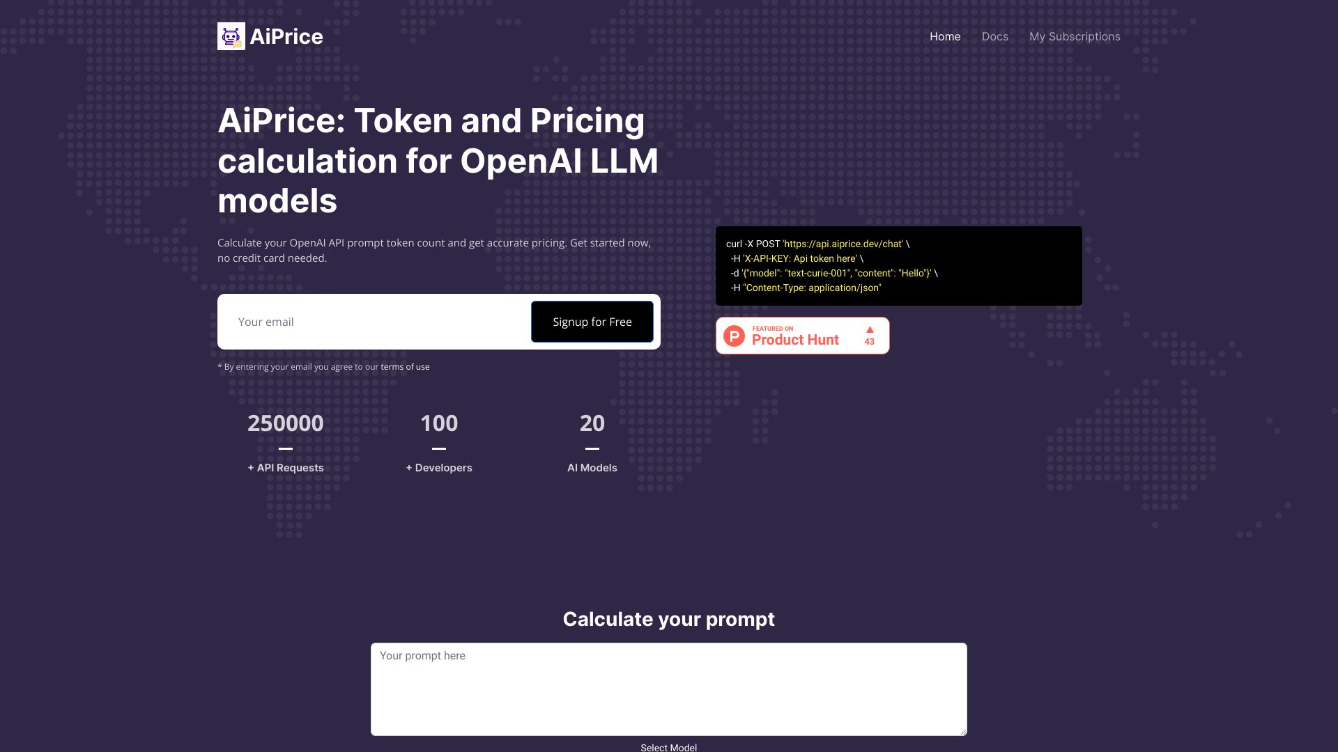 AiPrice is an API to calculate OpenAI API prompt cost and token count.