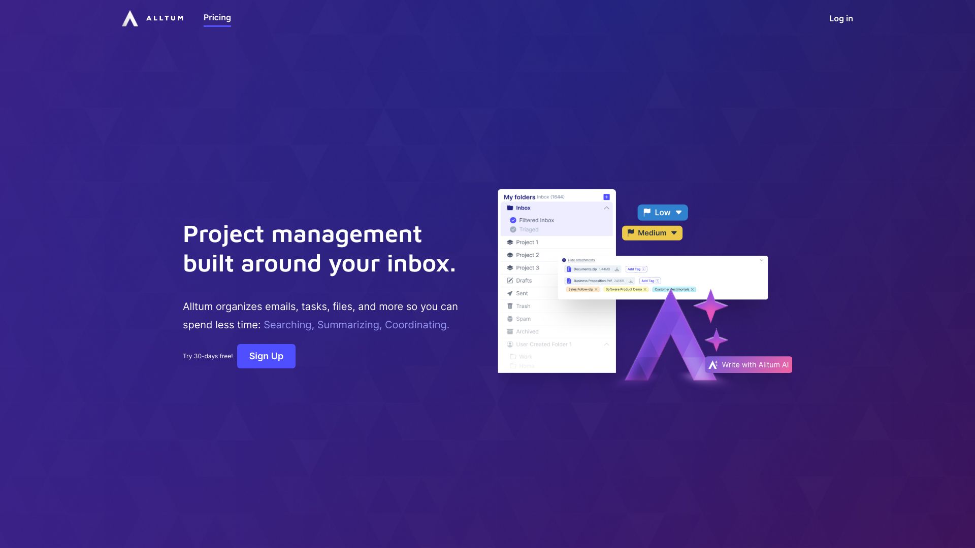 Alltum organizes emails, tasks, and files for efficient project management within your inbox.