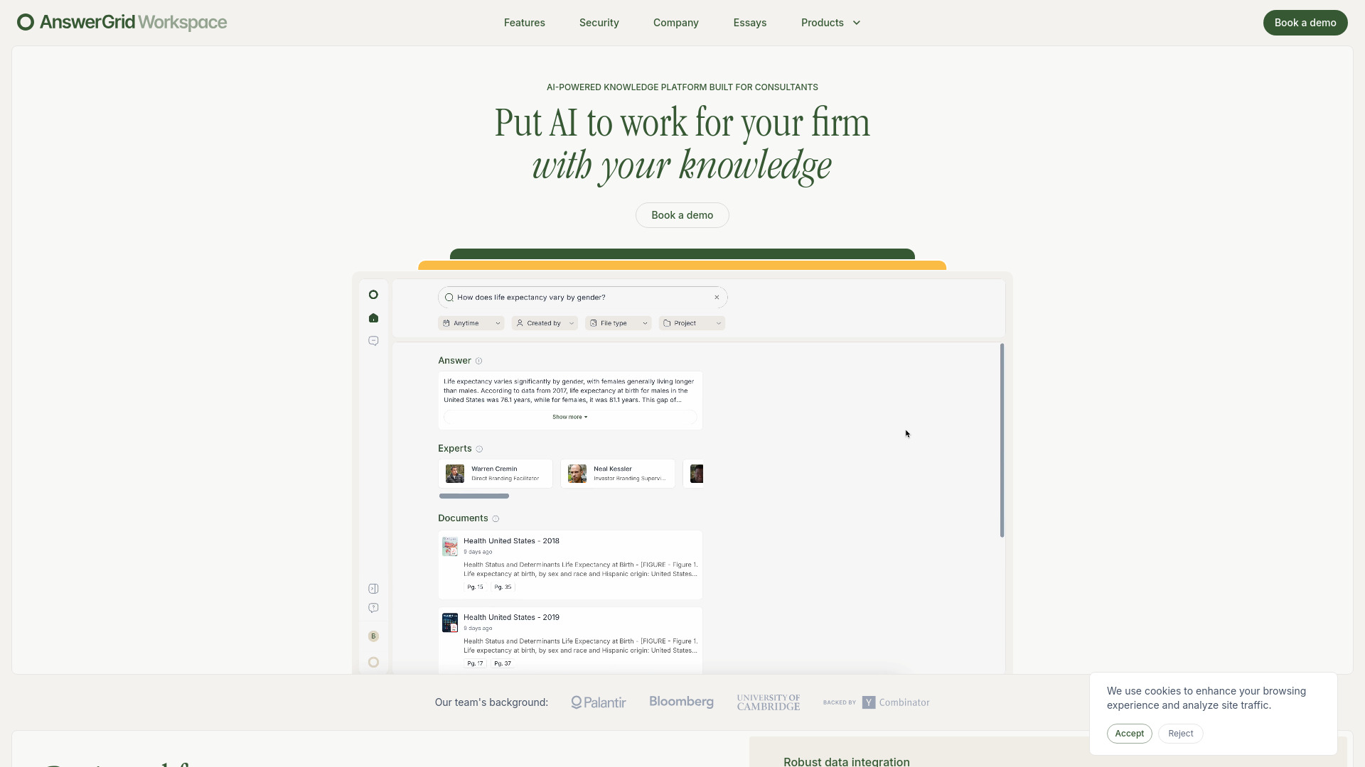 AI tool for consulting firms to enhance research and automate workflows.