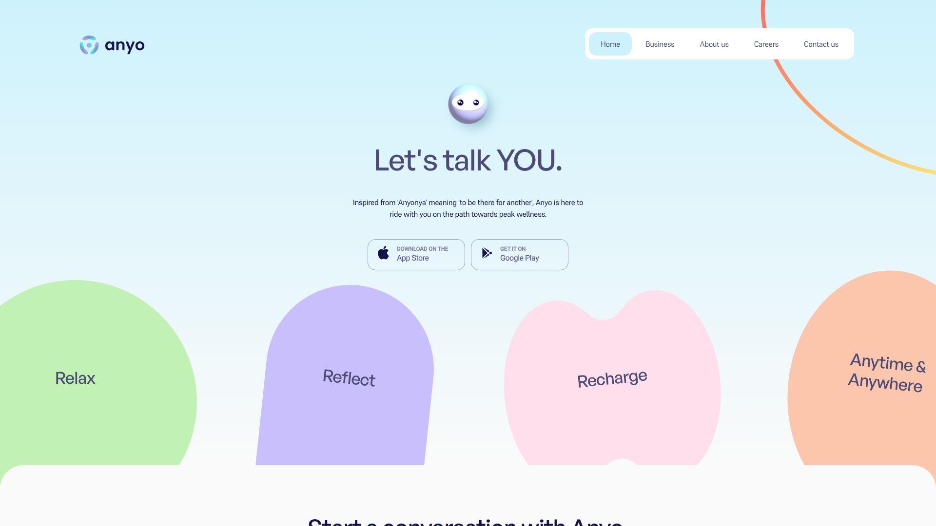 Mental health and emotional wellness mobile app with therapy, nutrition, and wellbeing features.