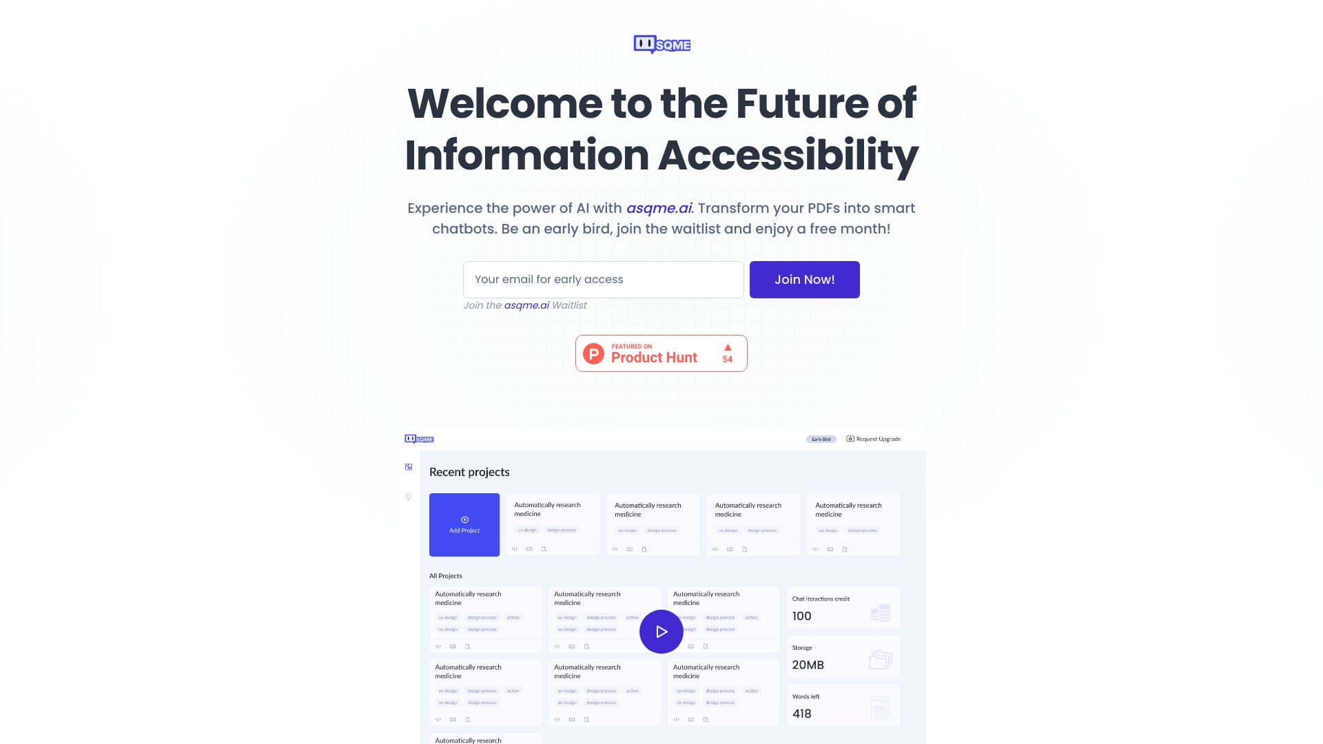 Asqme AI: Transforms texts into AI chatbots for smarter knowledge access and customer service.