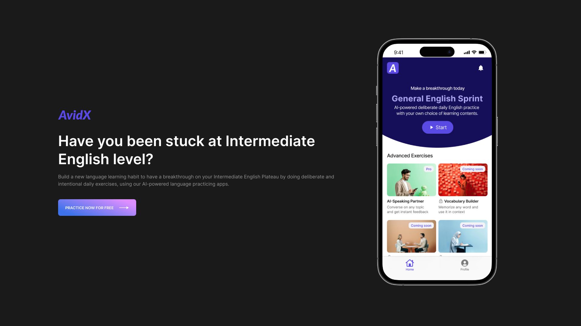AI-powered English practice app for intermediate learners to improve skills.
