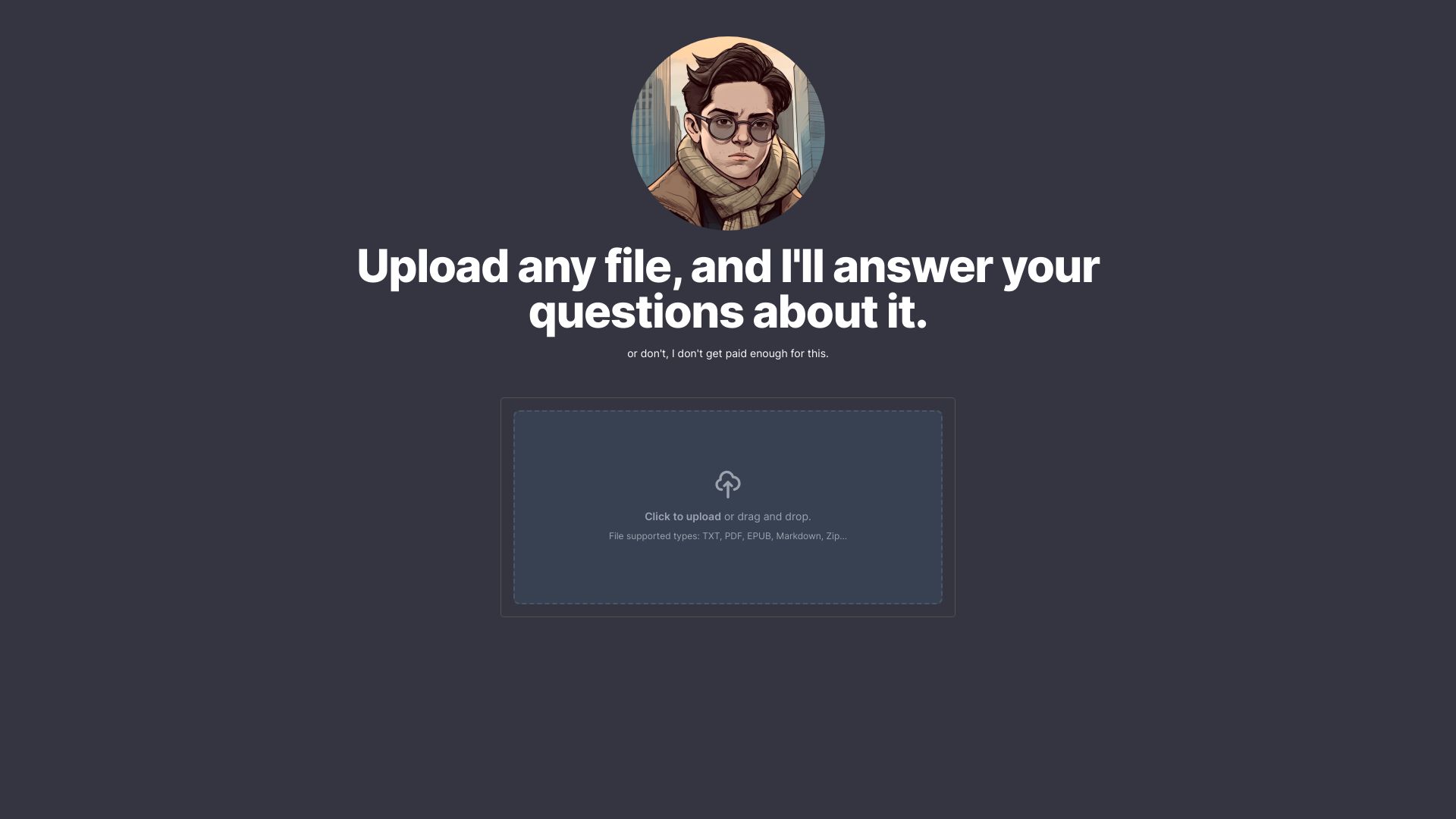 Ask questions about uploaded files, answered by a not-so-great AI cousin.