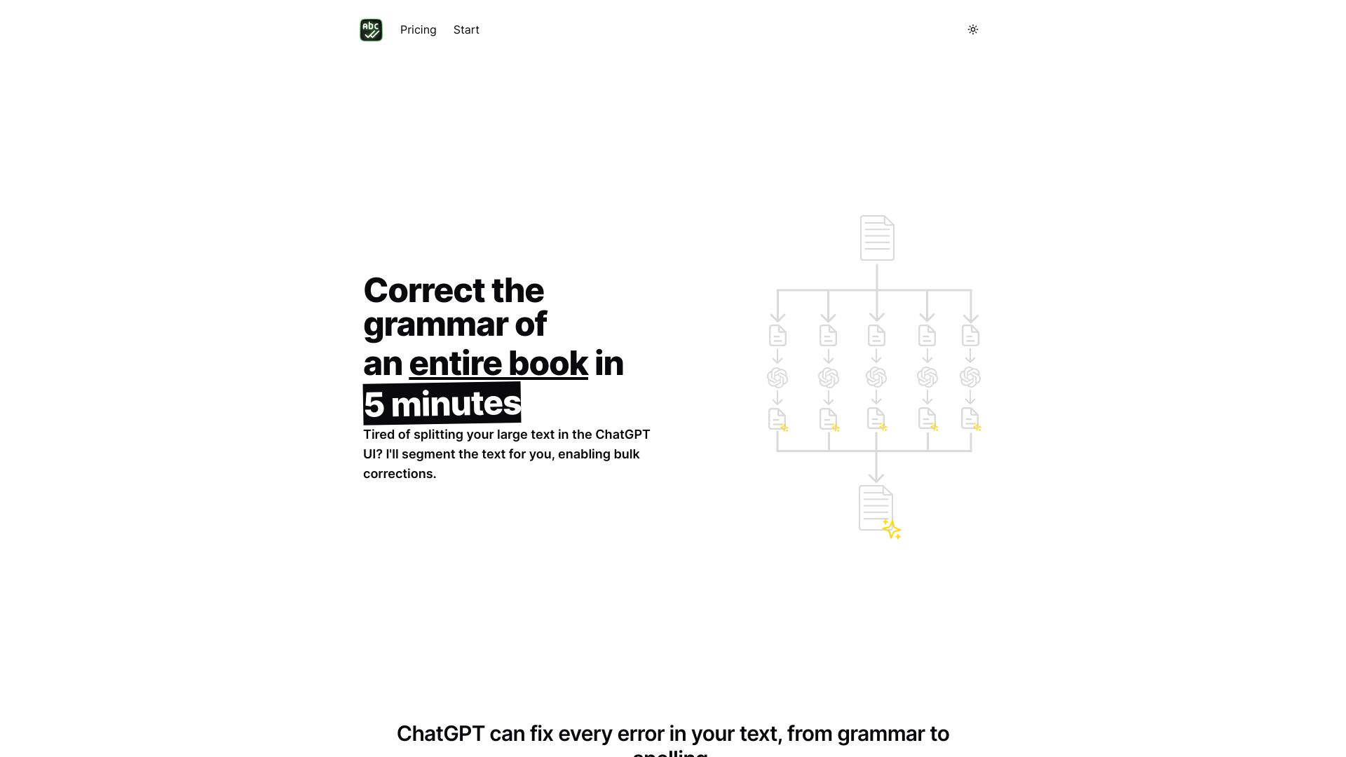BulkCorrector segments large texts for bulk grammar correction and translation using AI.