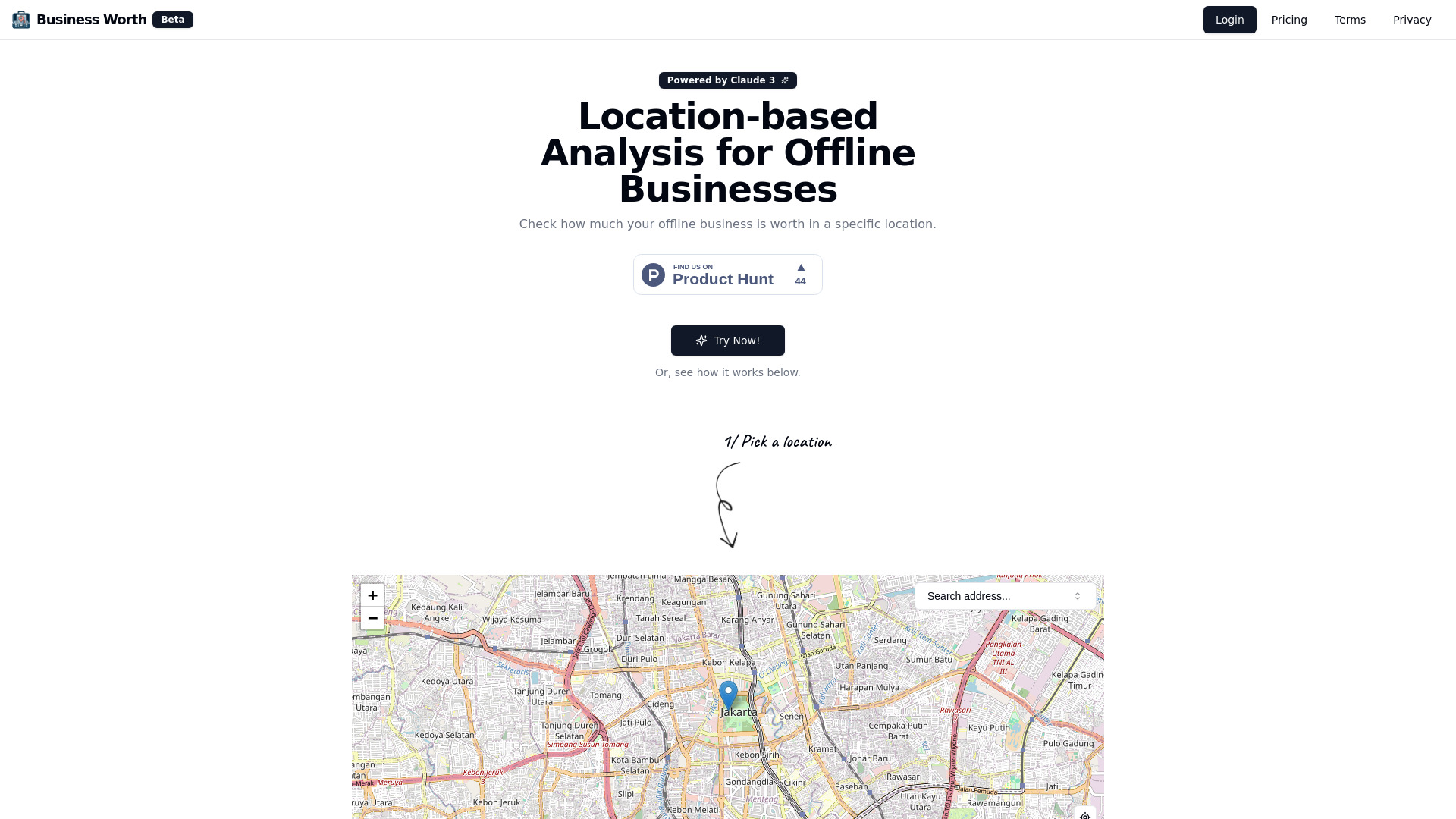 Location-based analysis tool providing revenue projections for offline businesses using AI.