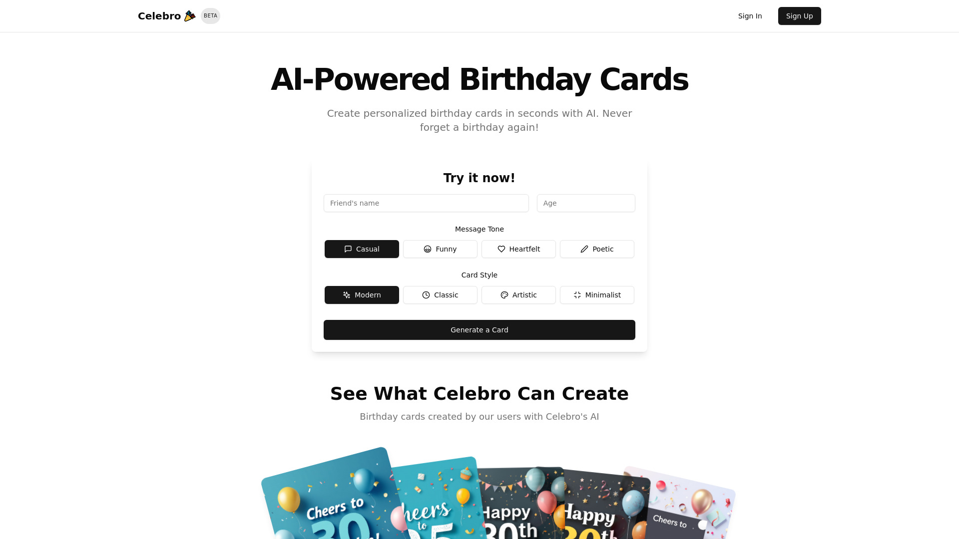 AI-powered platform for creating and scheduling personalized birthday cards.