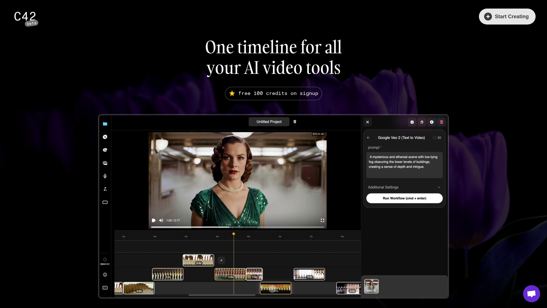 AI video editor that creates footage using AI models and comfyui workflows.