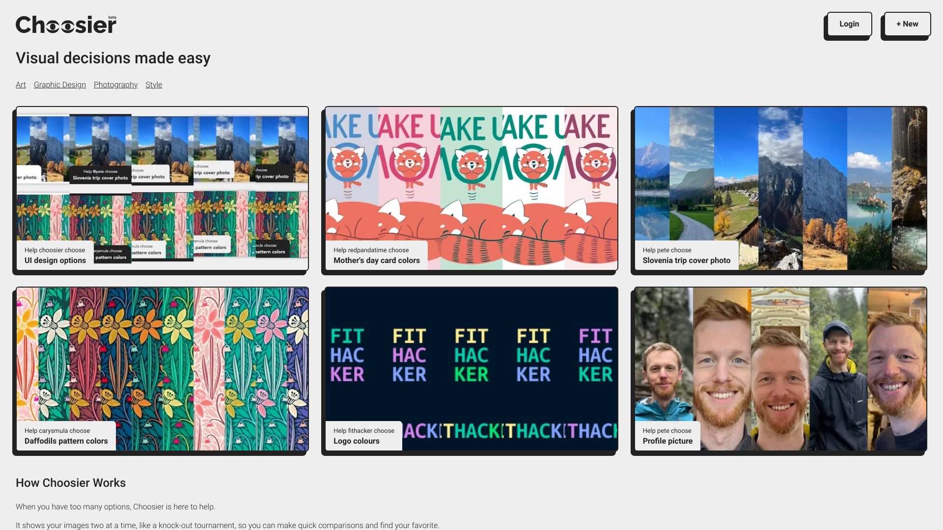 Choosier helps you choose between images by showing two at a time.