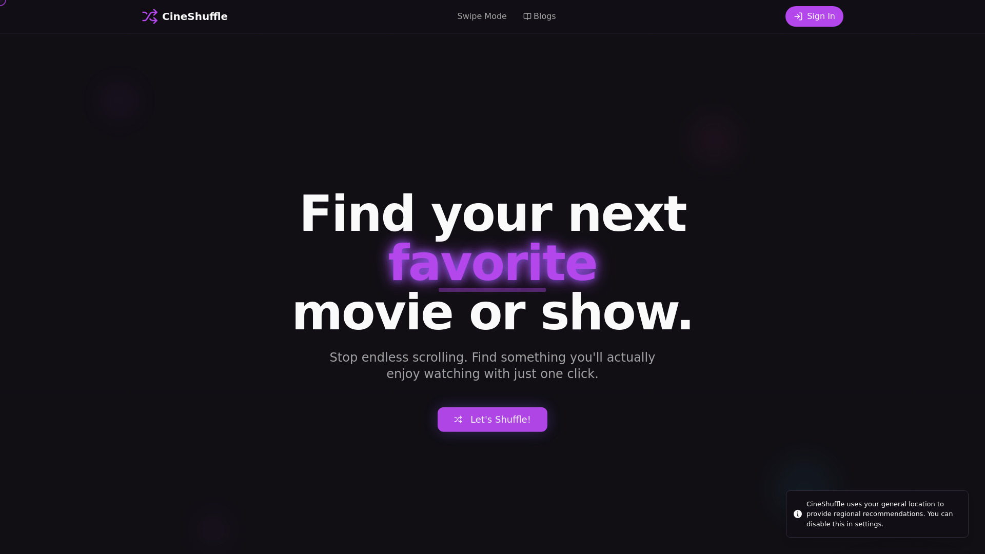 One-click movie/series matchmaker providing mood-based recommendations using AI.