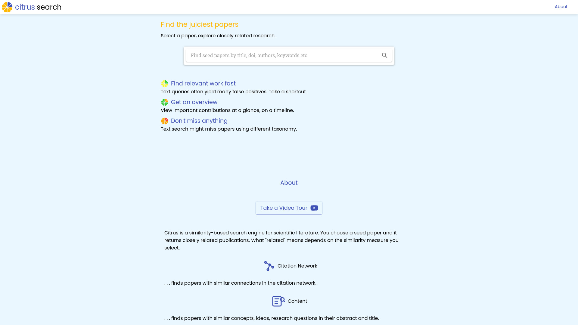 Similarity-based search engine for scientific literature, using machine learning to find related papers.
