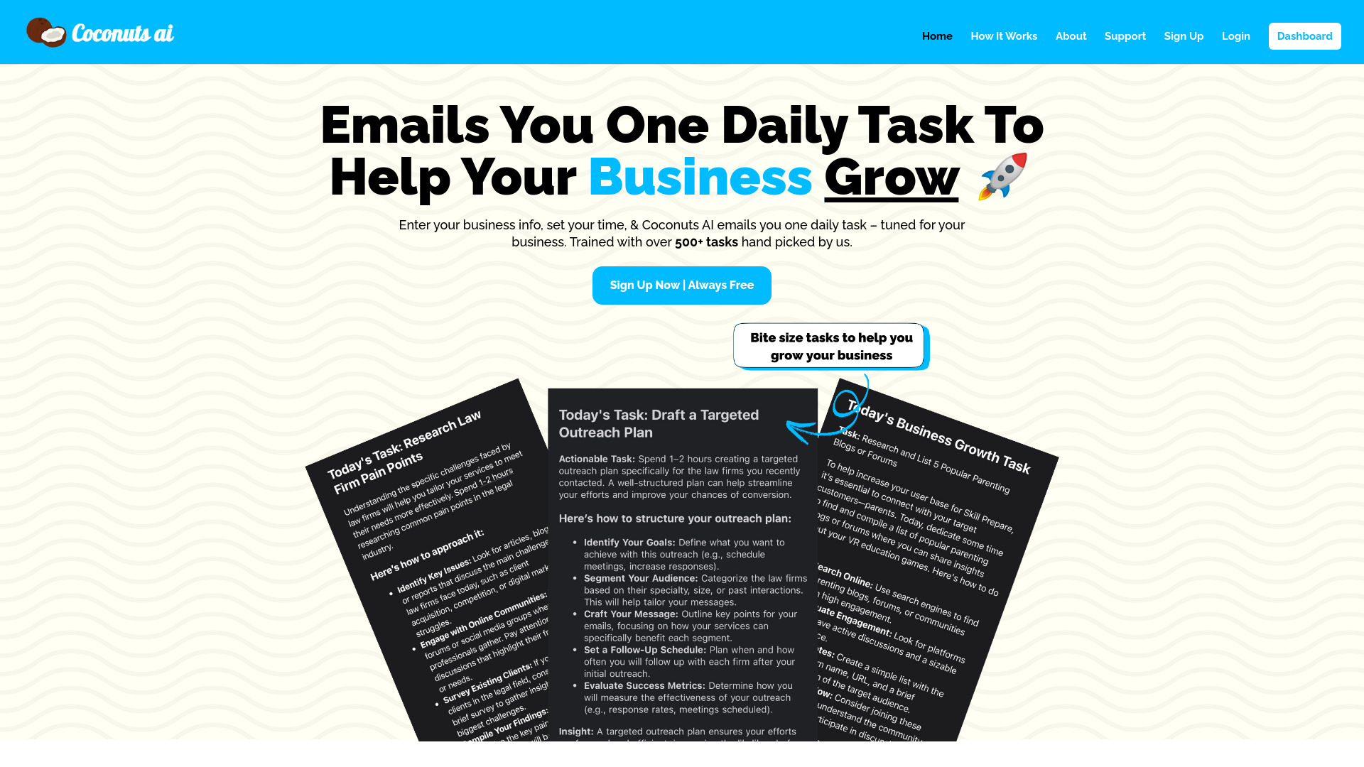 AI-powered platform sending daily business growth tasks.