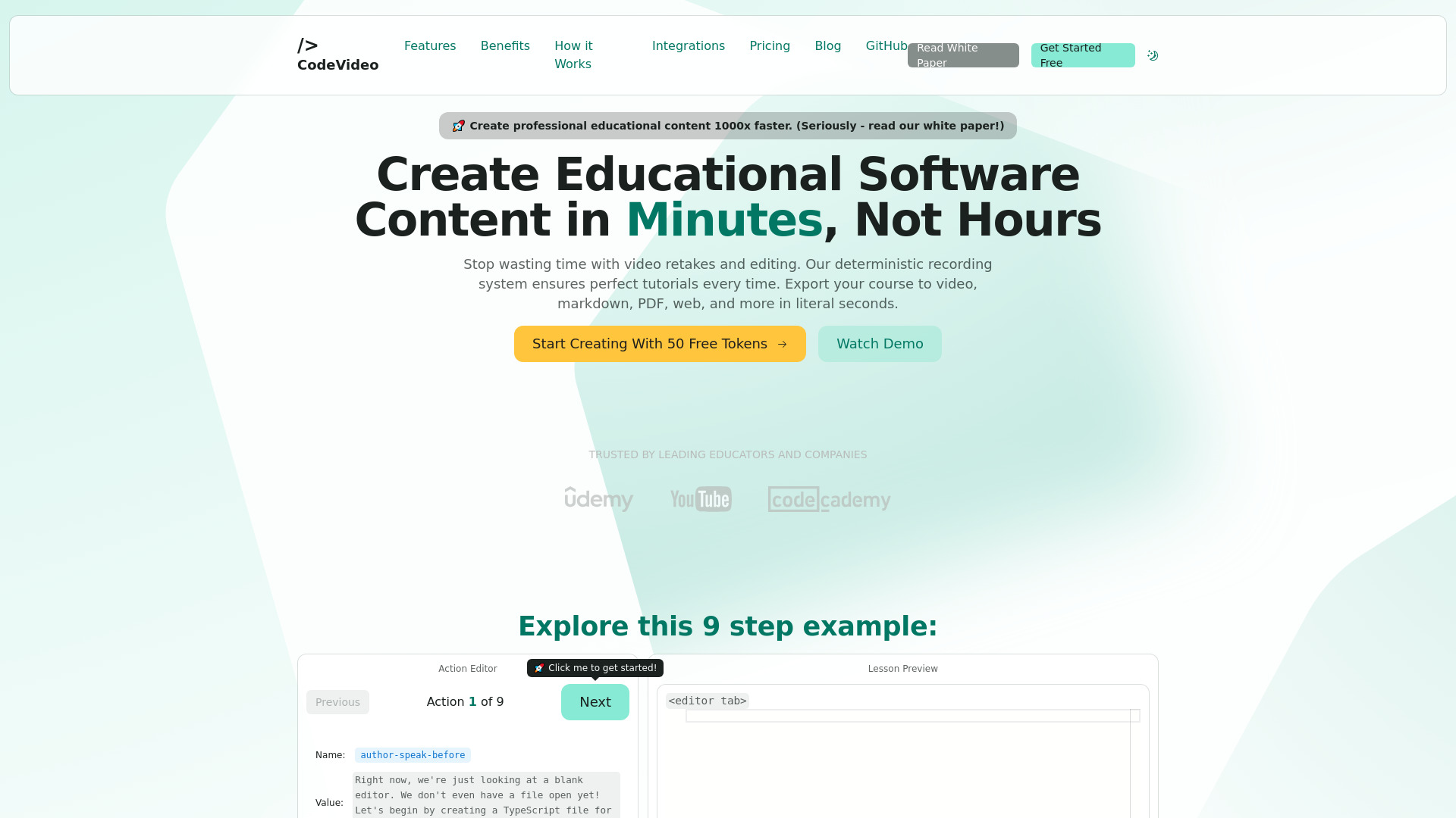 CodeVideo: Create educational software content quickly and export to multiple formats.