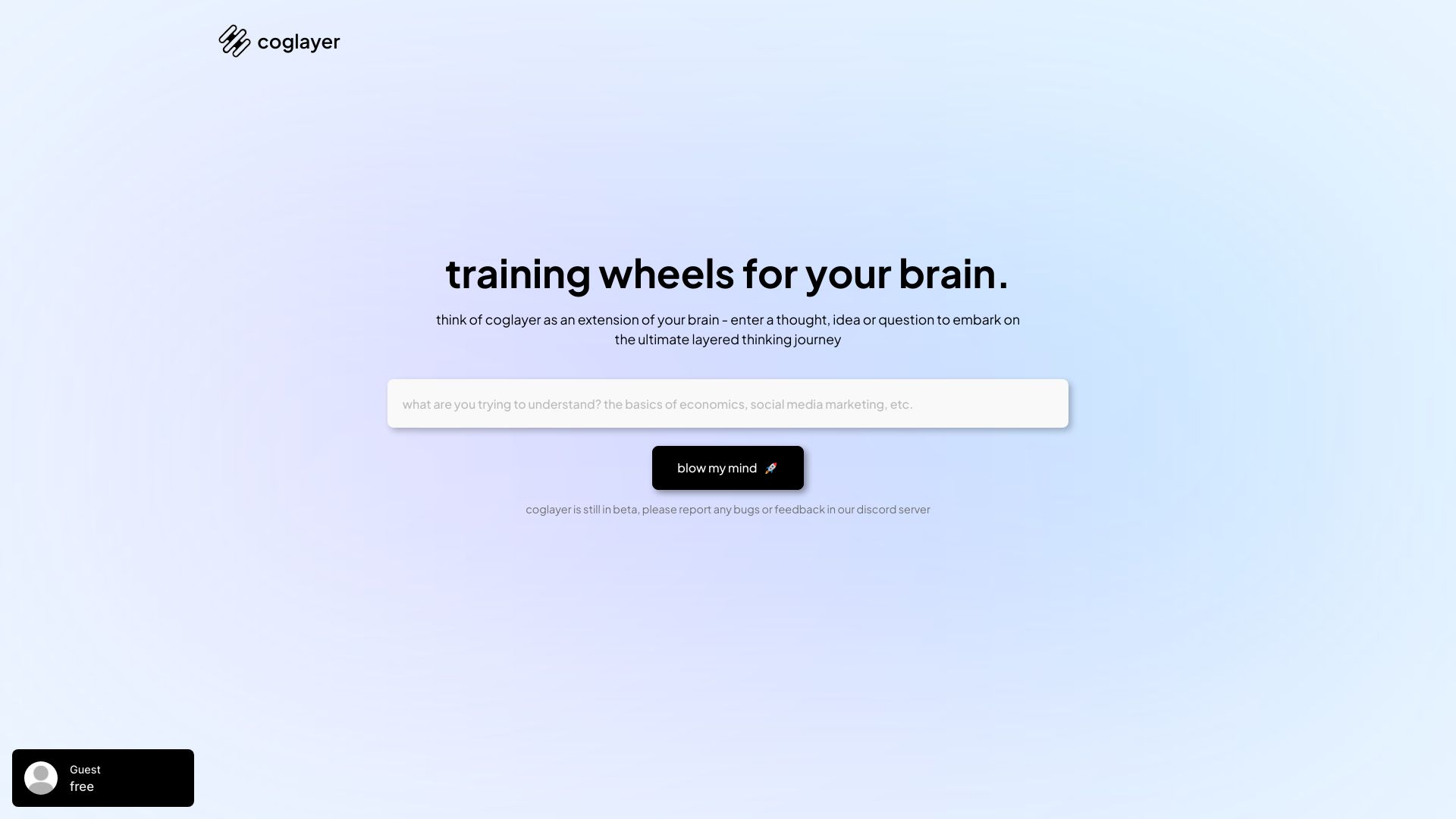 Coglayer is an AI thinking partner that helps you explore and understand your thoughts.