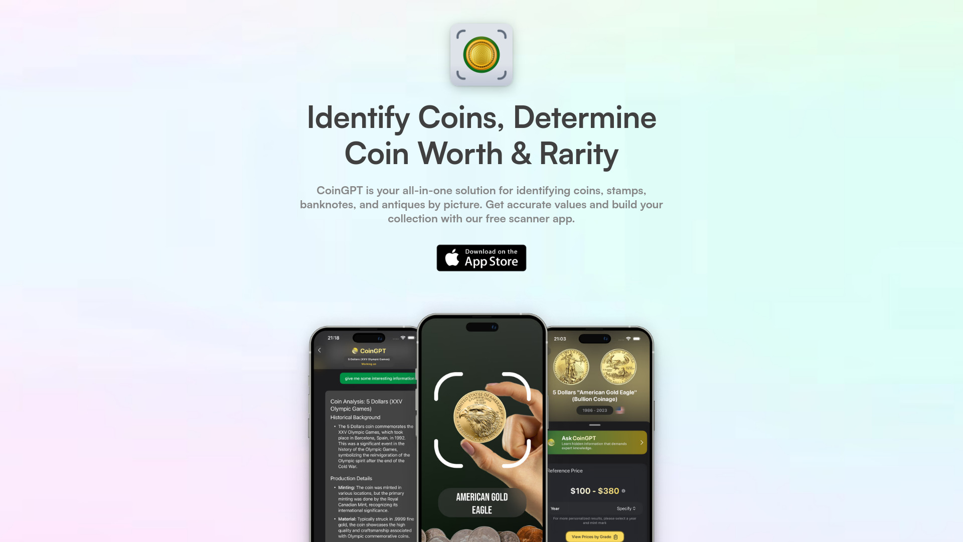 Free app to identify and value coins, stamps, banknotes, and antiques by picture.