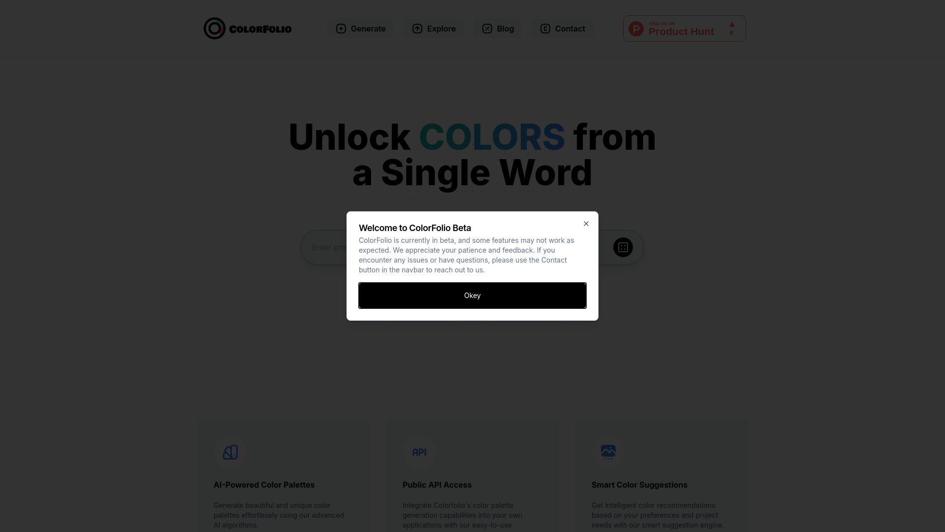 AI-powered tool for generating unique color palettes from prompts.