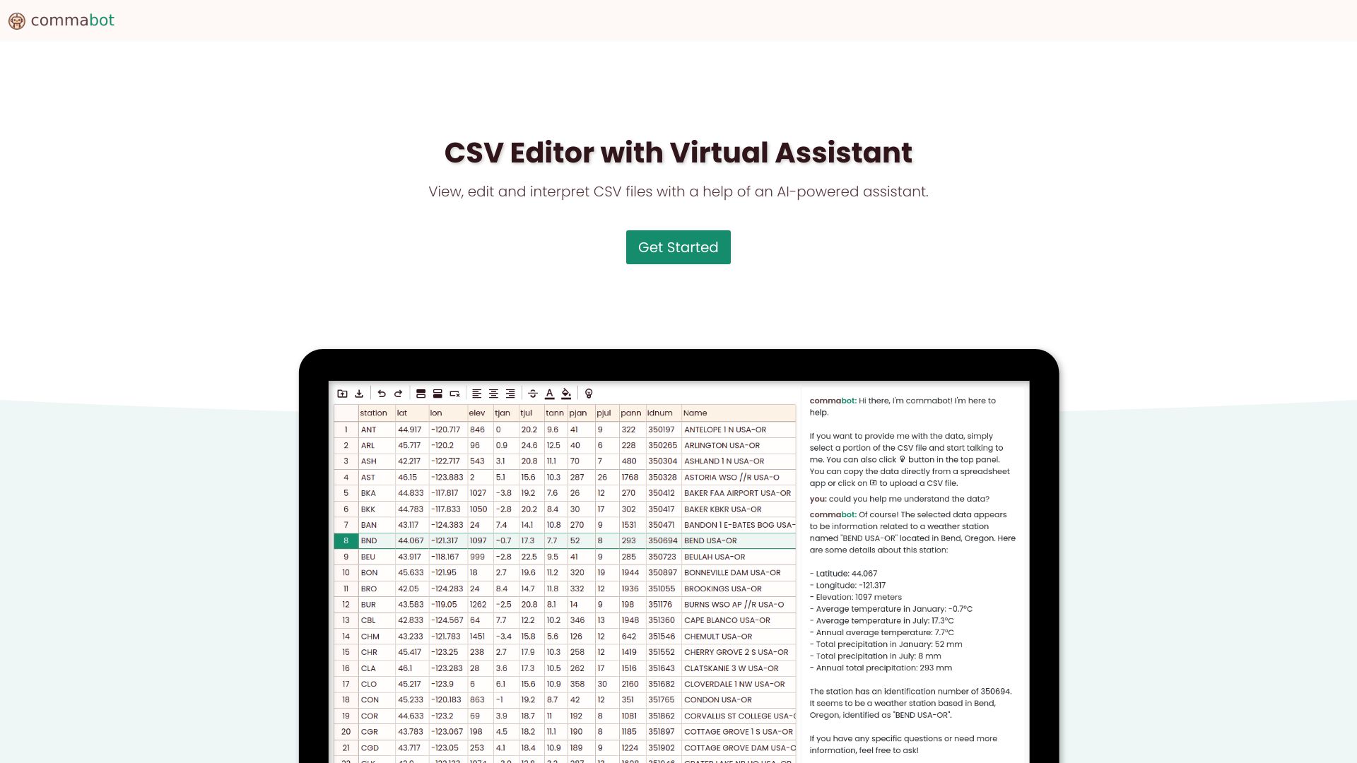 Online CSV editor with AI assistant for viewing, editing, and interpreting CSV files.