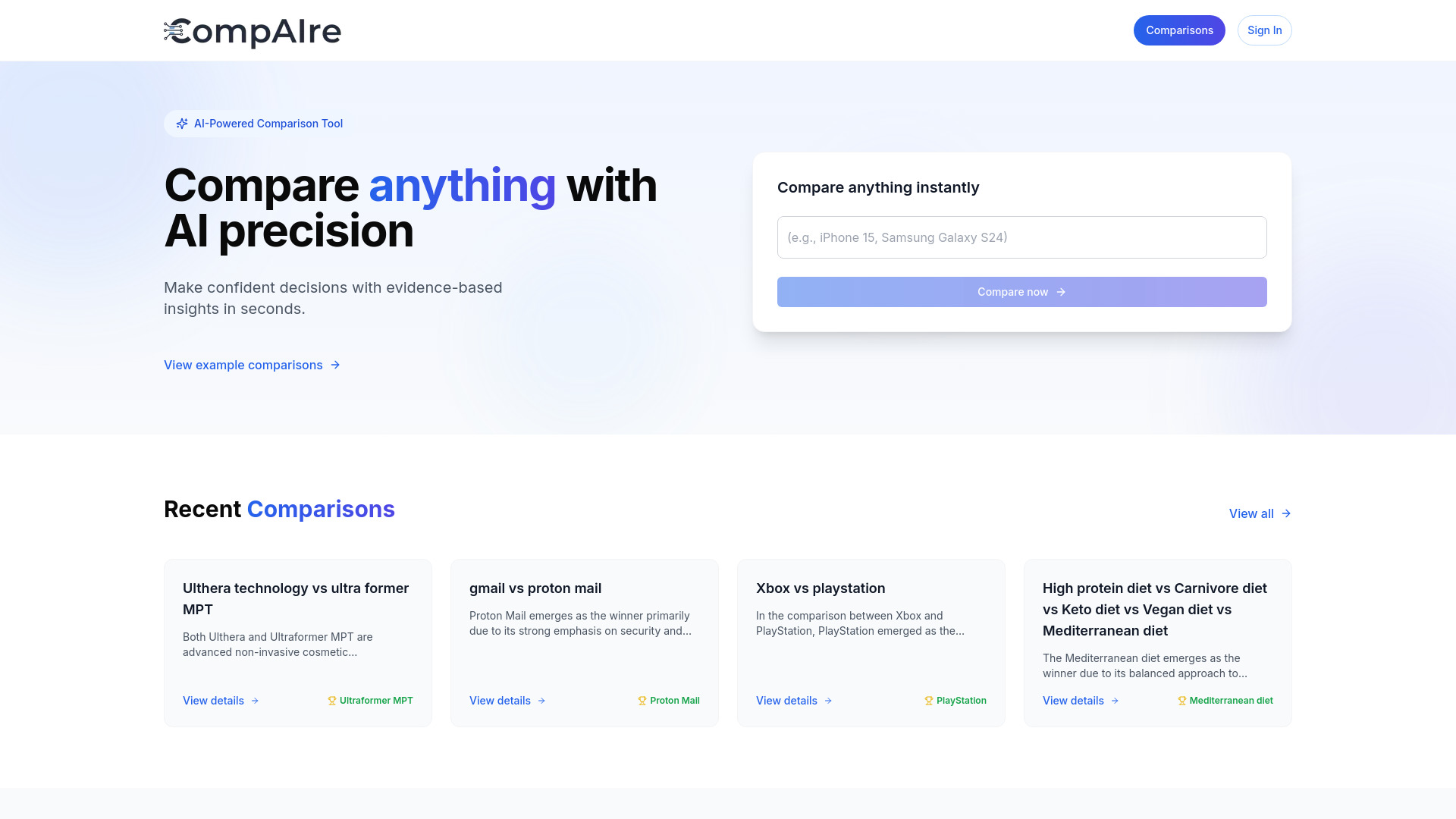 AI-powered comparison tool for smarter, faster decisions.