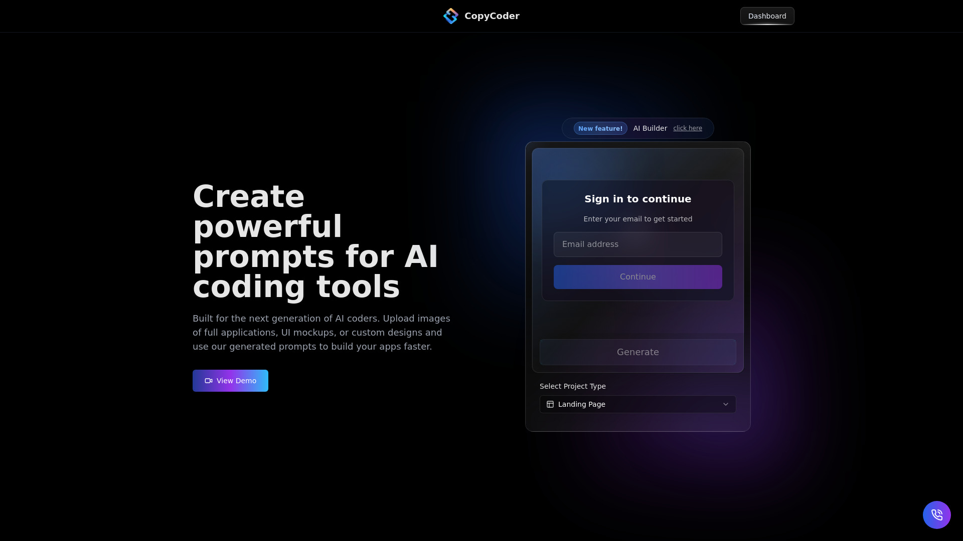 CopyCoder generates AI prompts for coding tools from images to build apps faster.