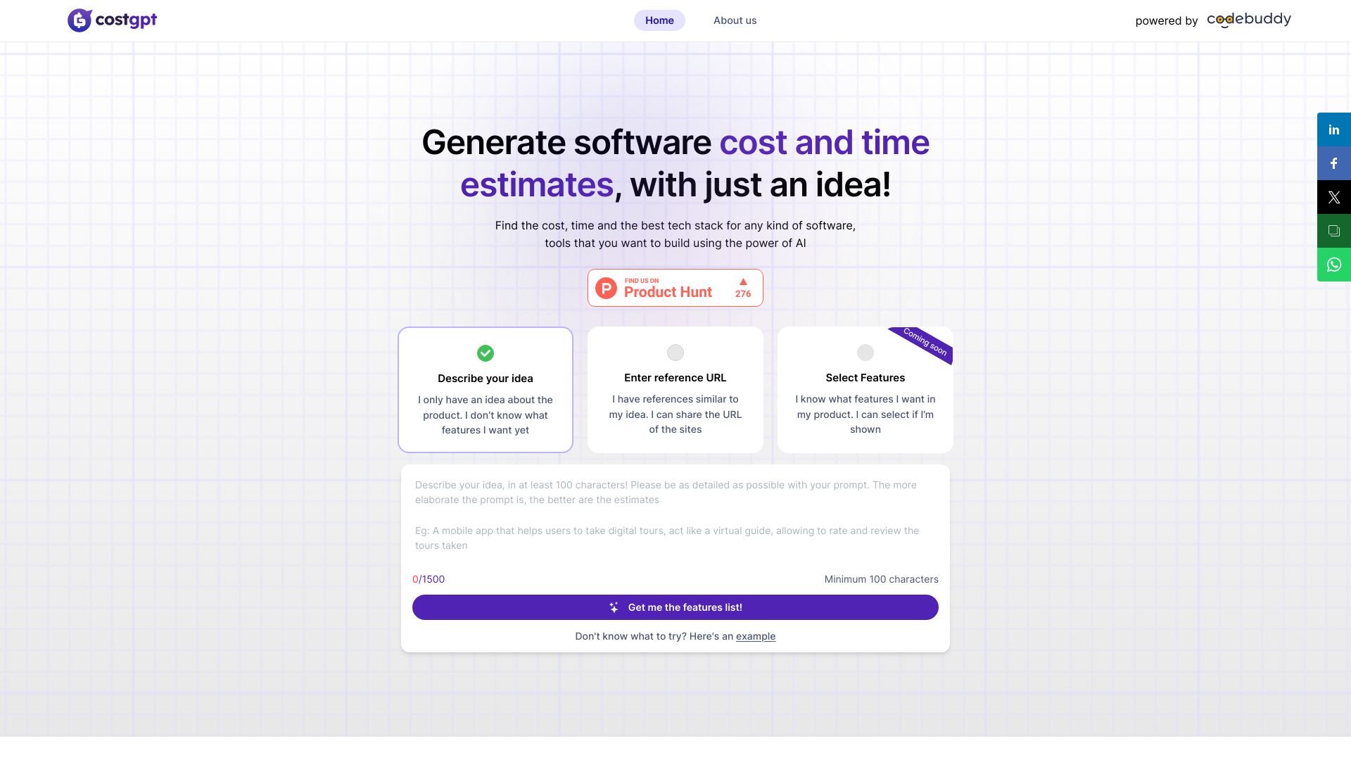AI-powered software cost estimator for generating cost and time estimates for software projects.