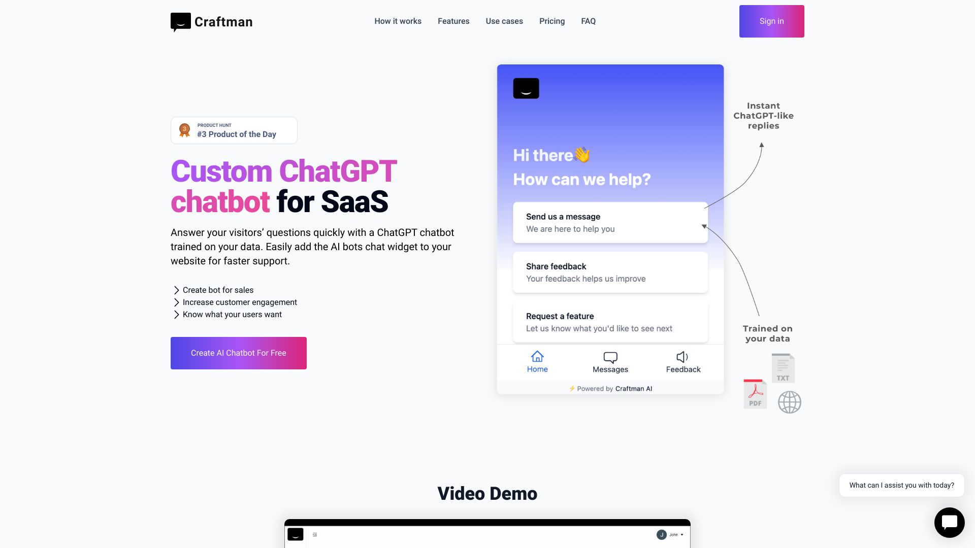 AI chatbot builder that trains ChatGPT on your data for website integration.