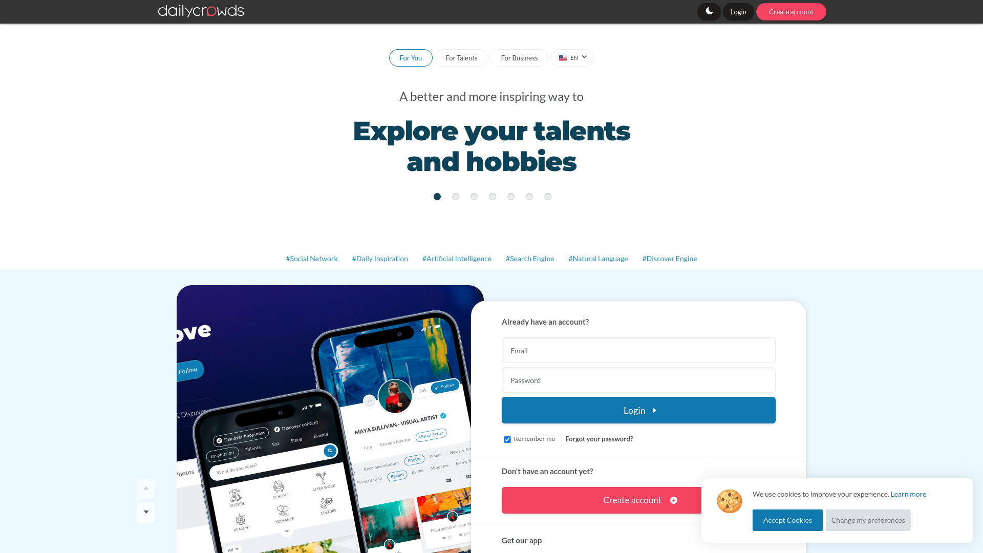 A social network with a discovery engine and semantic search for daily inspiration.