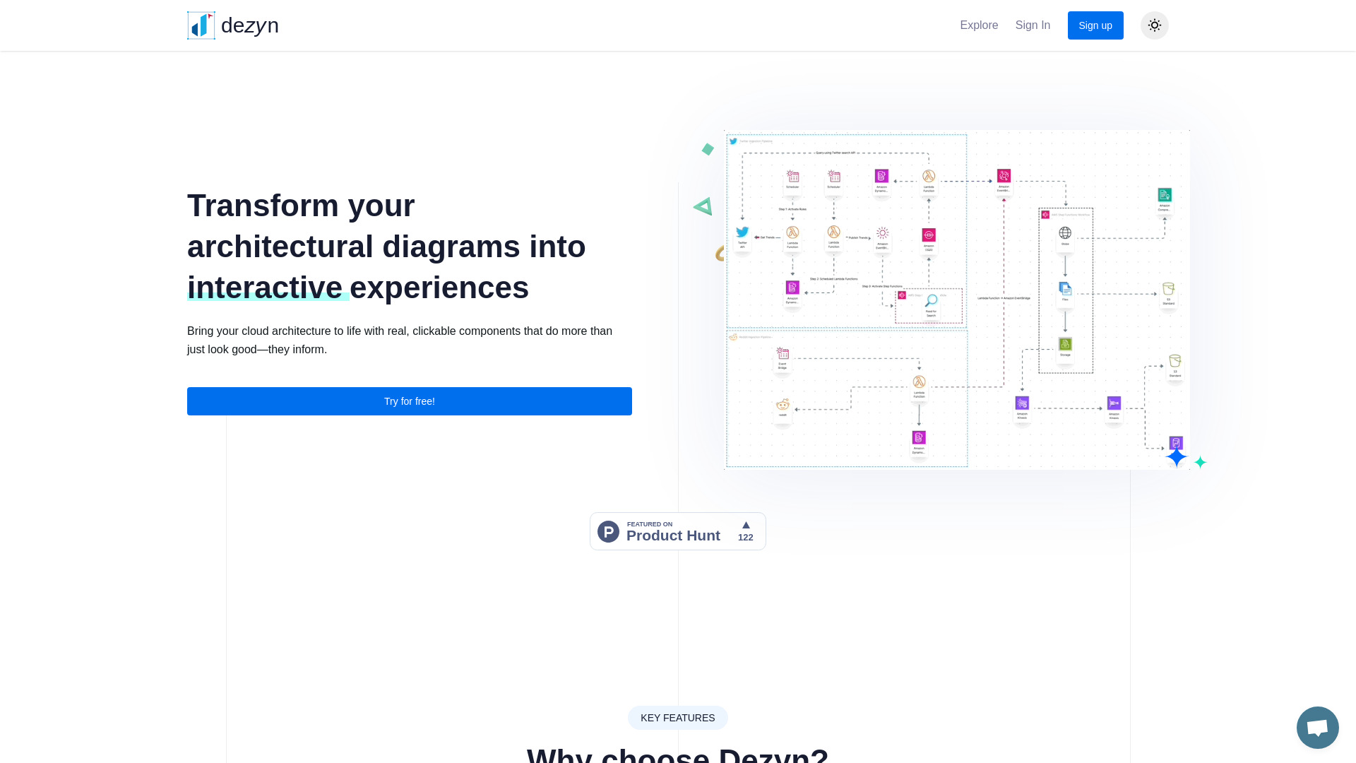 Dezyn creates interactive architectural diagrams with clickable components for architects, engineers, and designers.