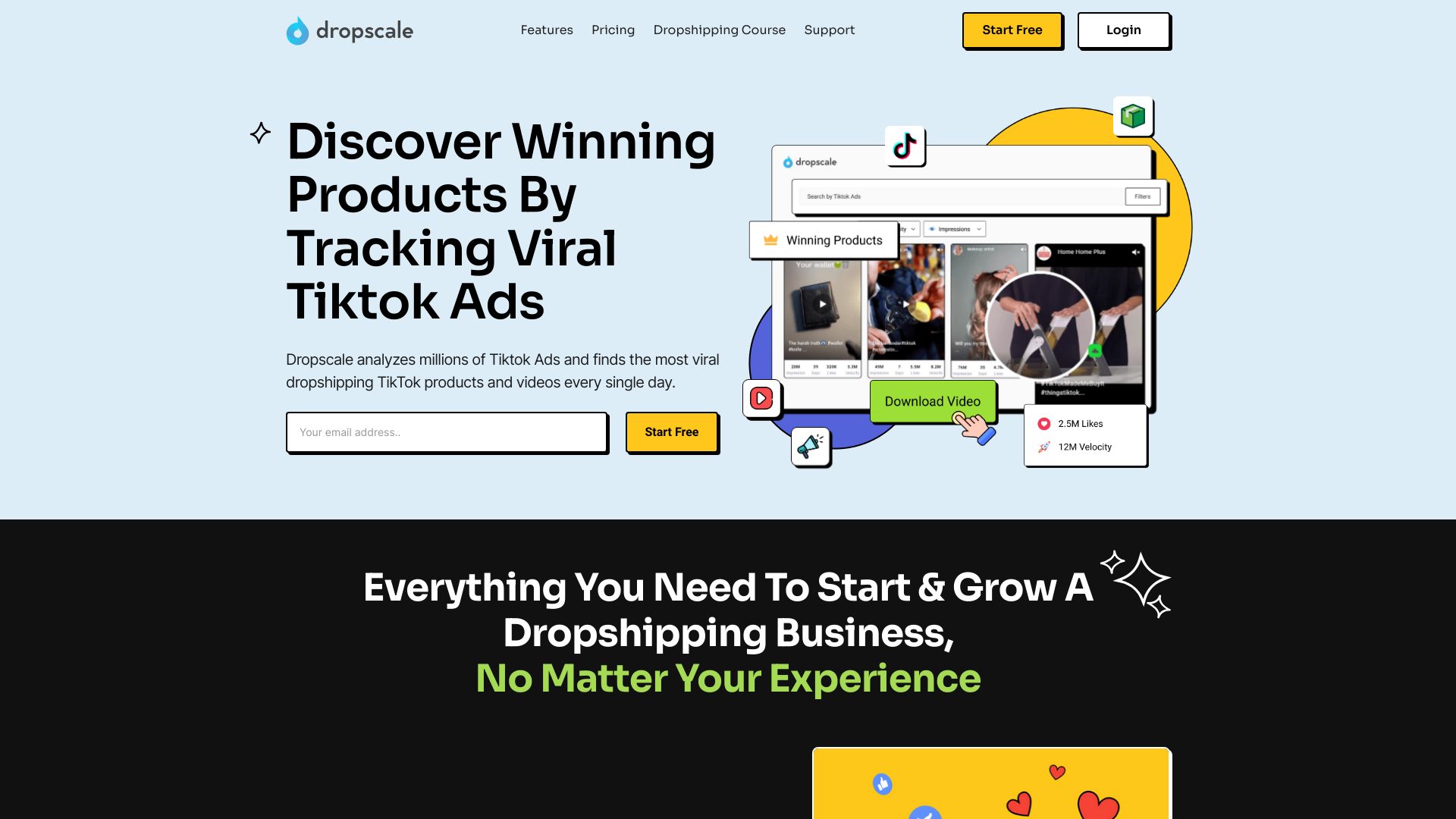 Dropshipping tool for finding winning products via TikTok ad tracking and automation.