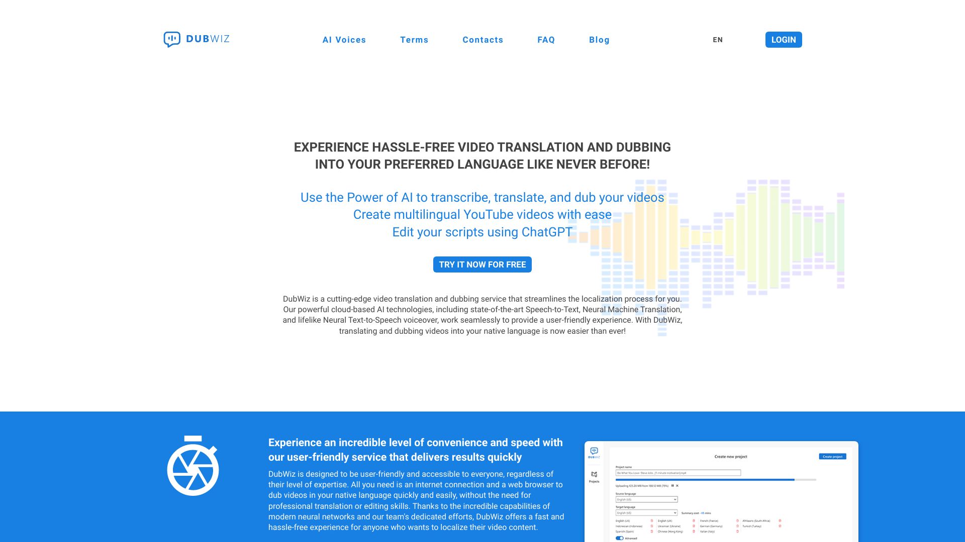 AI-powered video dubbing and translation service for creating multilingual videos.