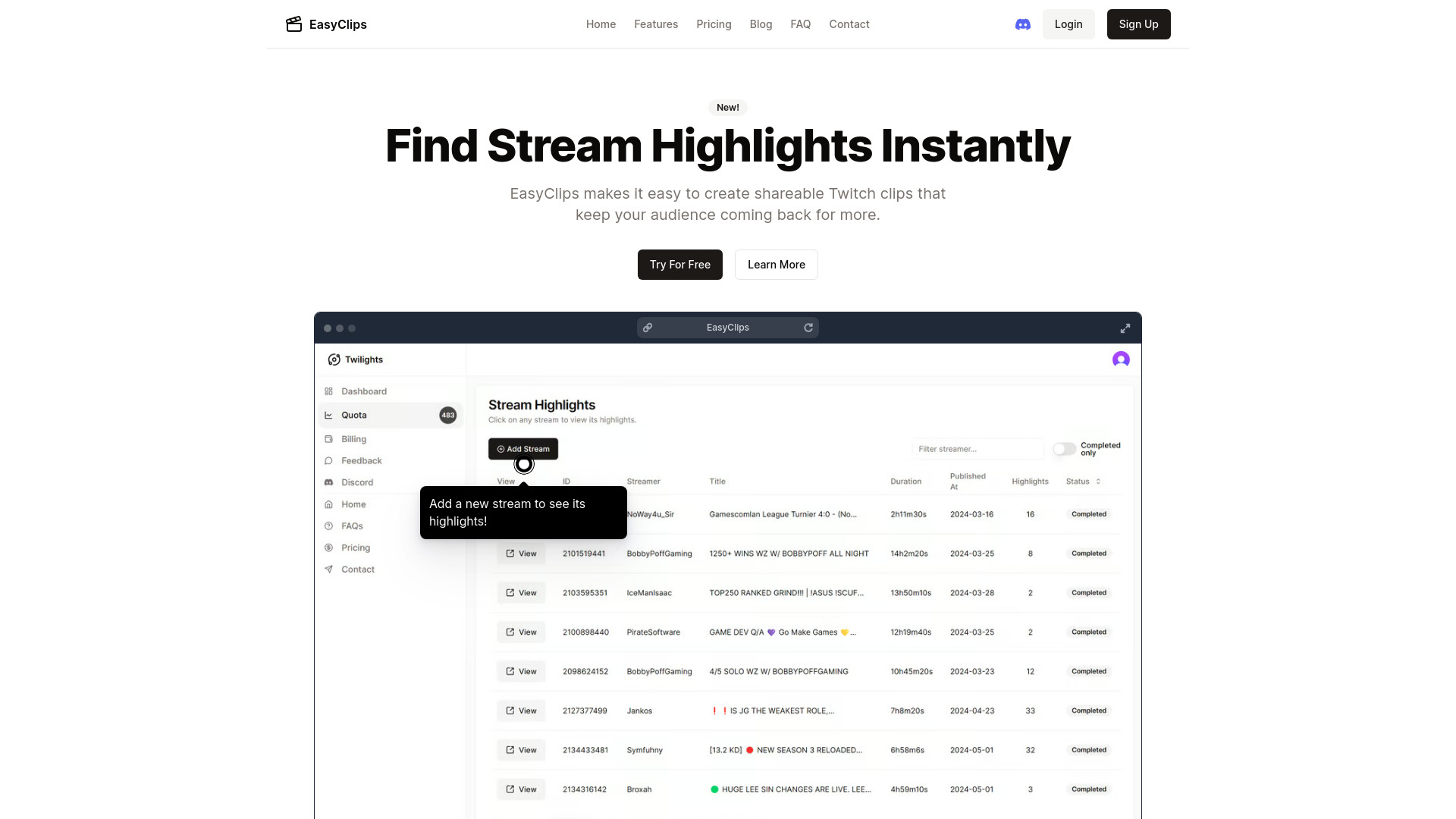 AI tool to create Twitch highlights and clips for content creators.