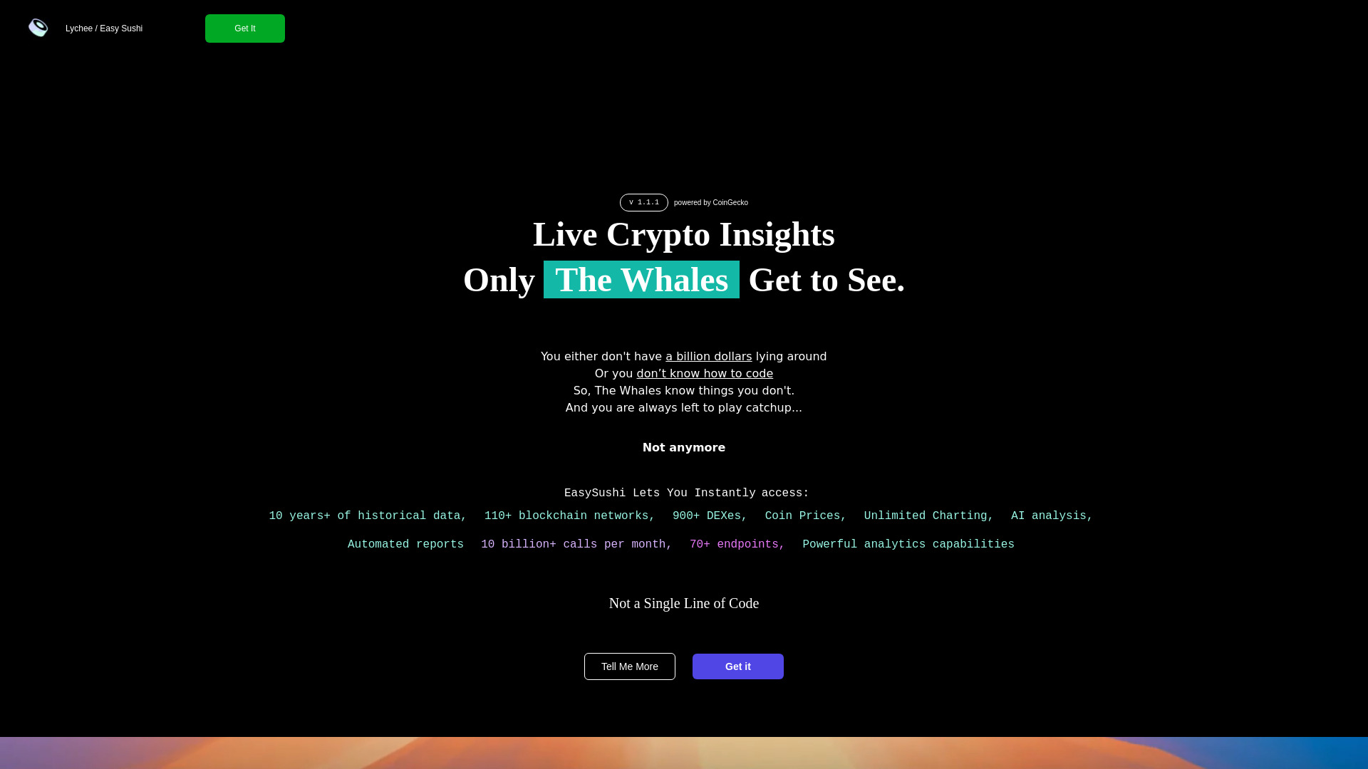 EasySushi offers no-code crypto market insights with historical data, charting, and AI analysis.