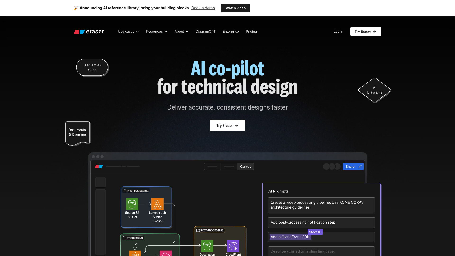 AI co-pilot for technical design and documentation with diagramming capabilities.