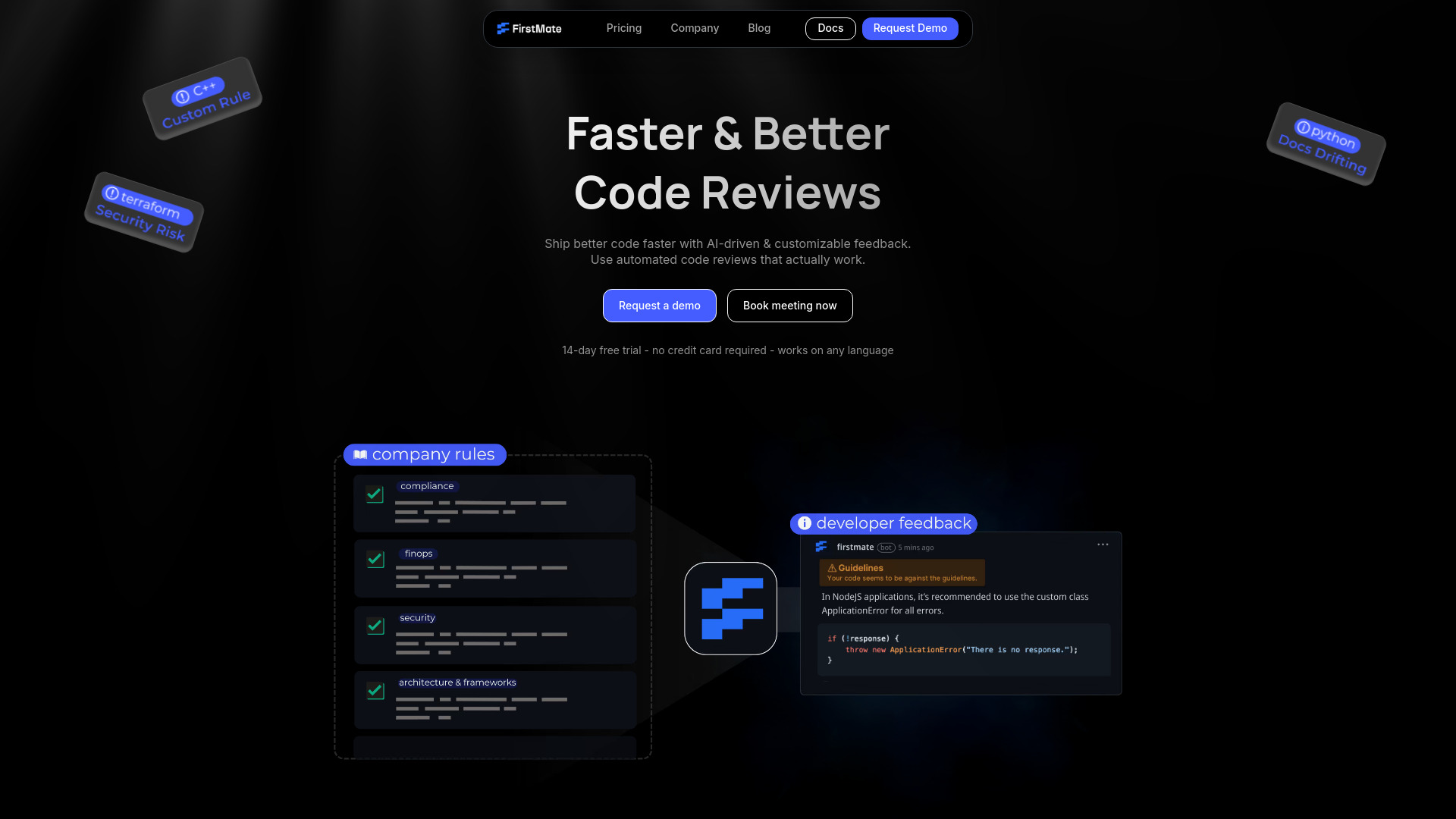 FirstMate automates code reviews, debugs pipelines, and helps maintain codebase quality.