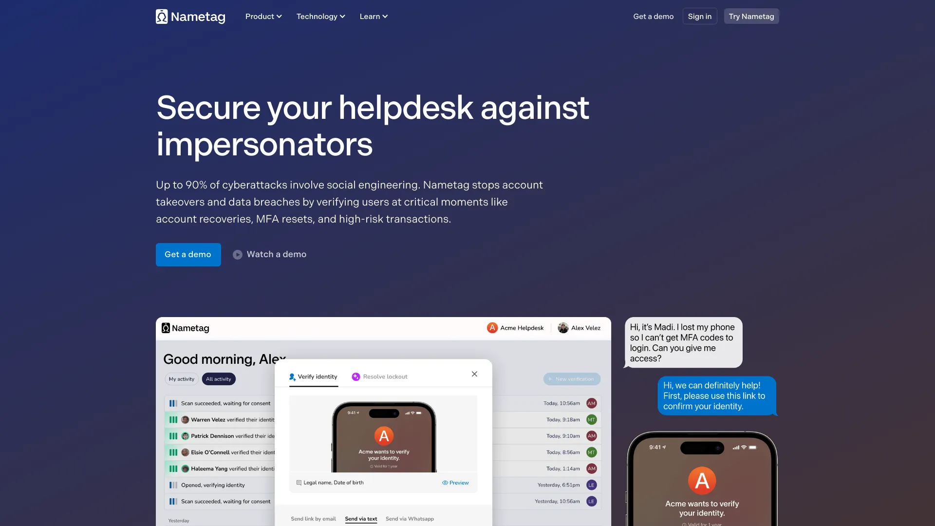 Identity verification solution for helpdesks to prevent cyberattacks and reduce IT costs.