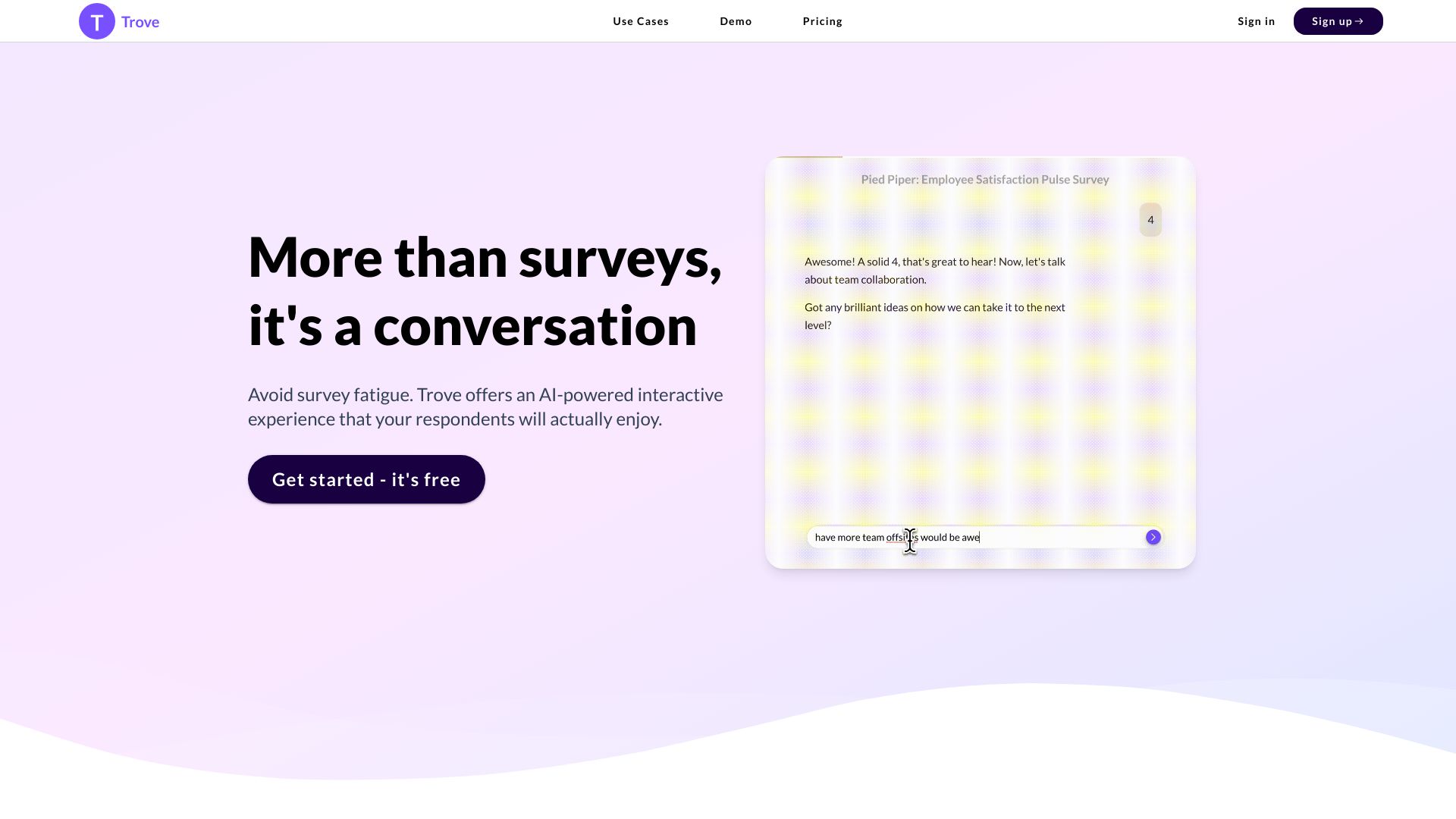 Trove AI offers forms, surveys, and a ChatGPT-like interface for conversational interactions.