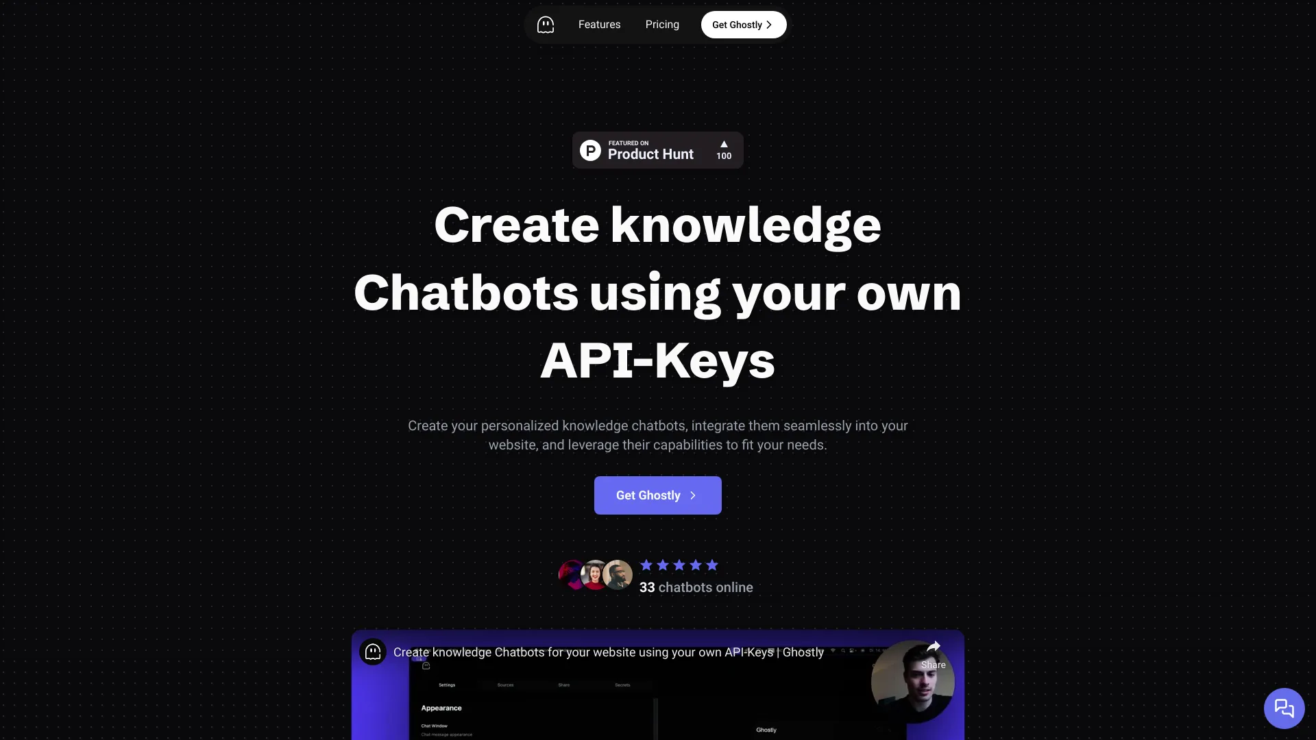 Ghostly: Create customizable knowledge chatbots for websites using your own OpenAI key.