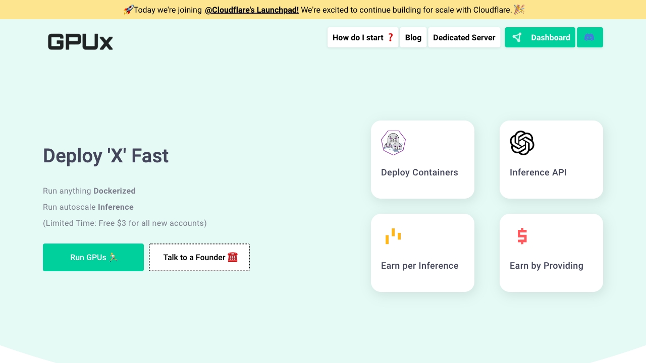GPU platform for Dockerized applications and AI inference with cost savings.