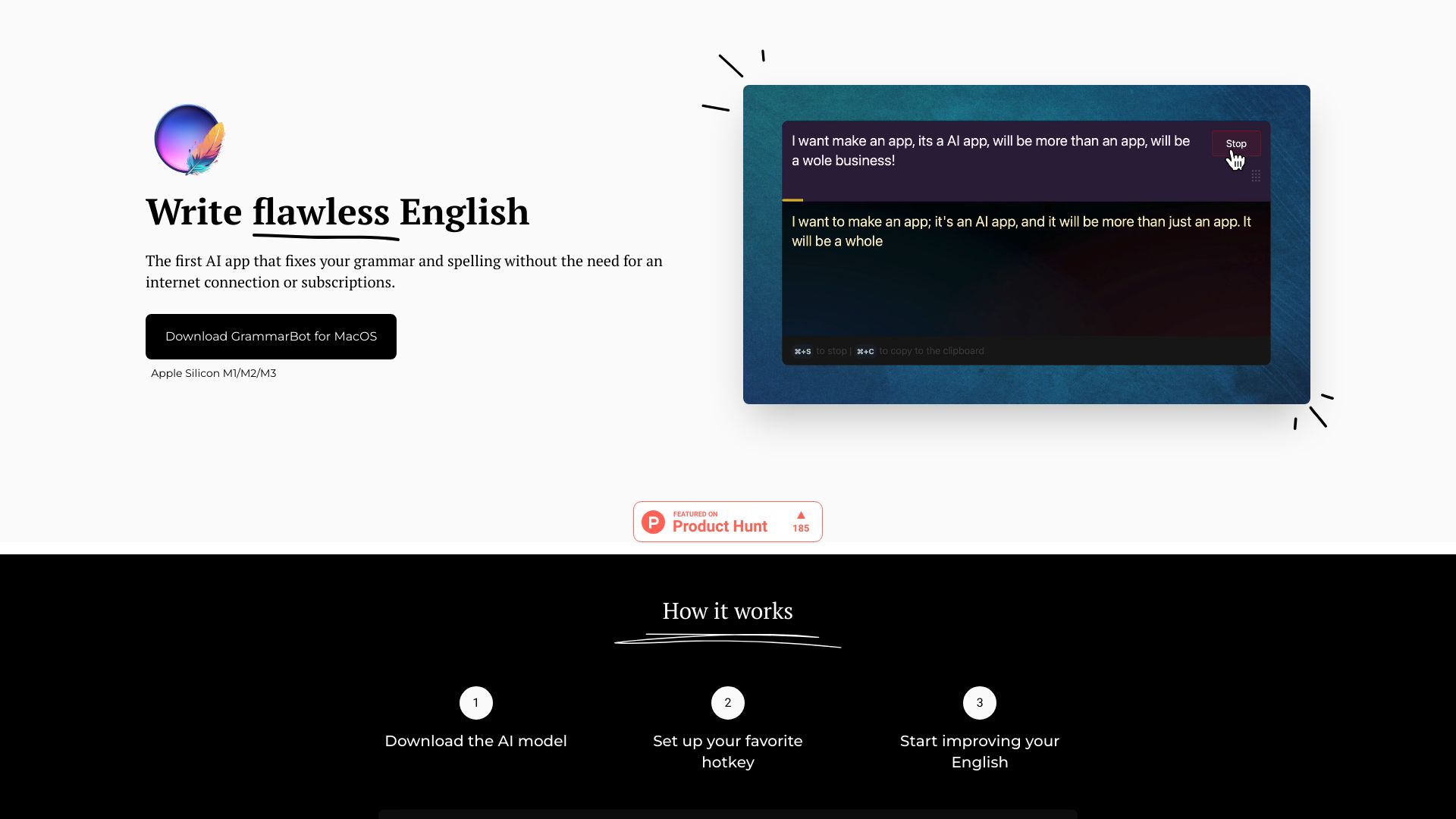 MacOS app that checks English grammar and spelling using a local AI model.