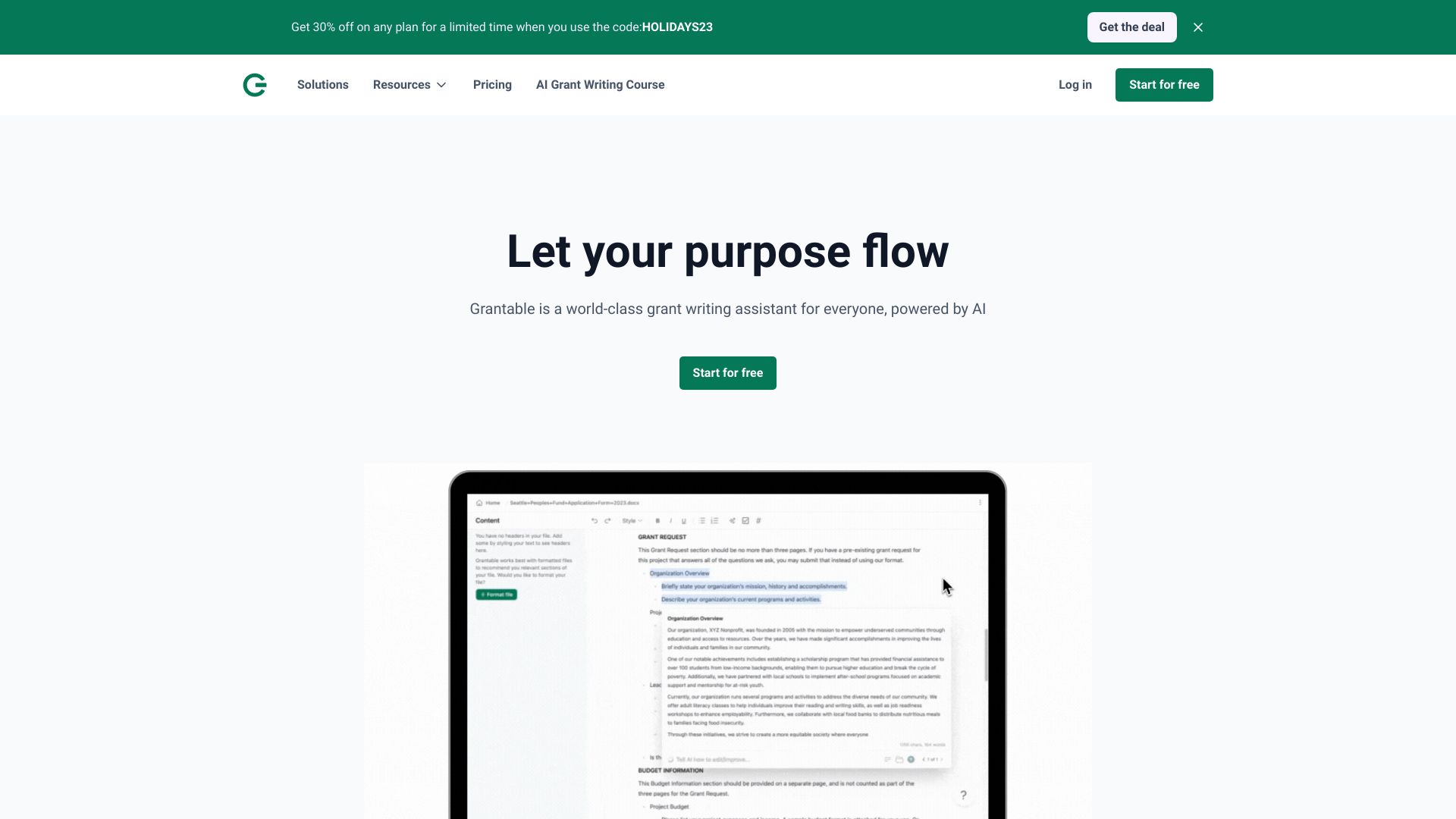 AI grant writing platform for professionals to win more funding efficiently.