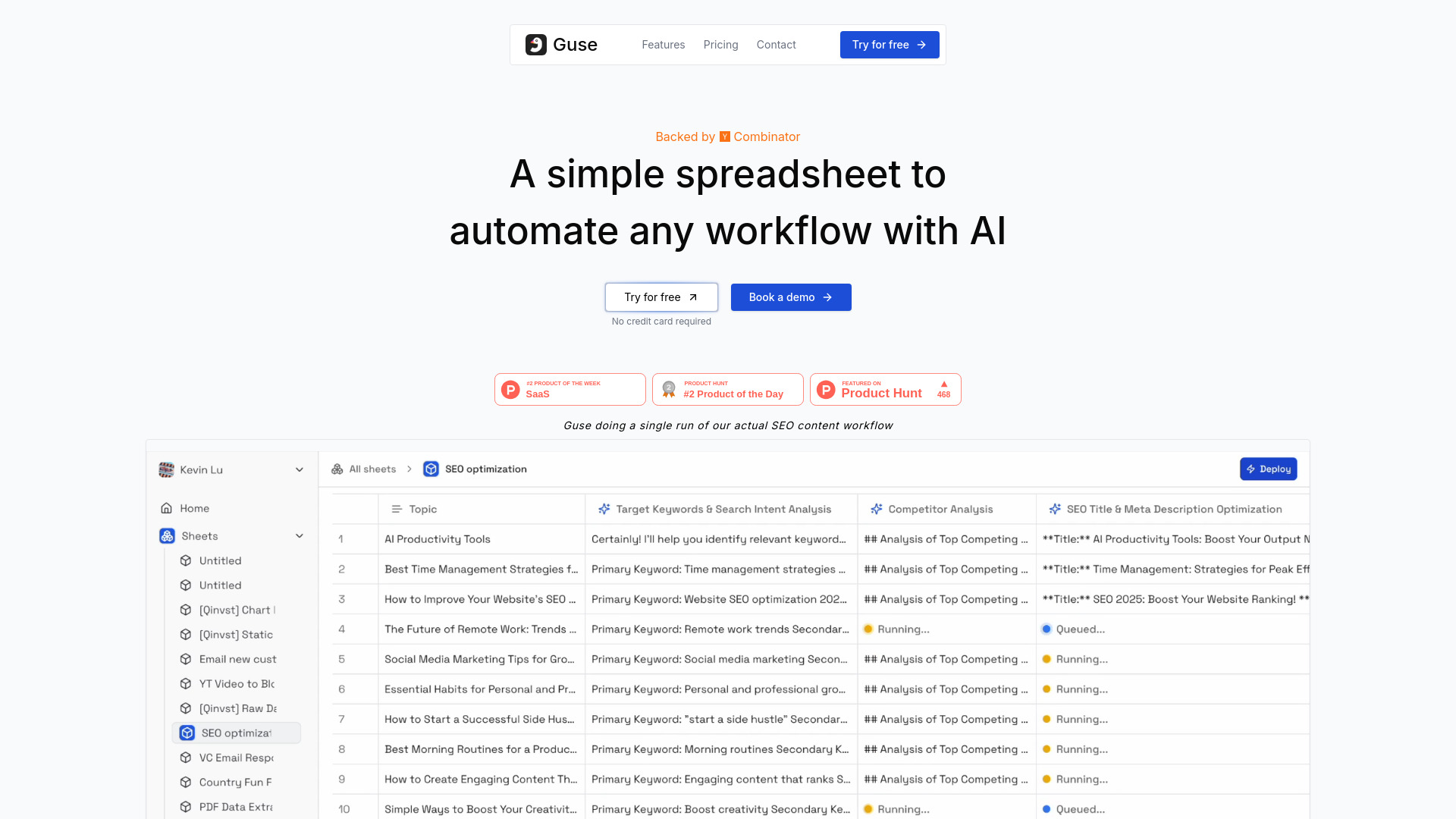 Guse is a spreadsheet-based platform to build AI agents and automate tasks.