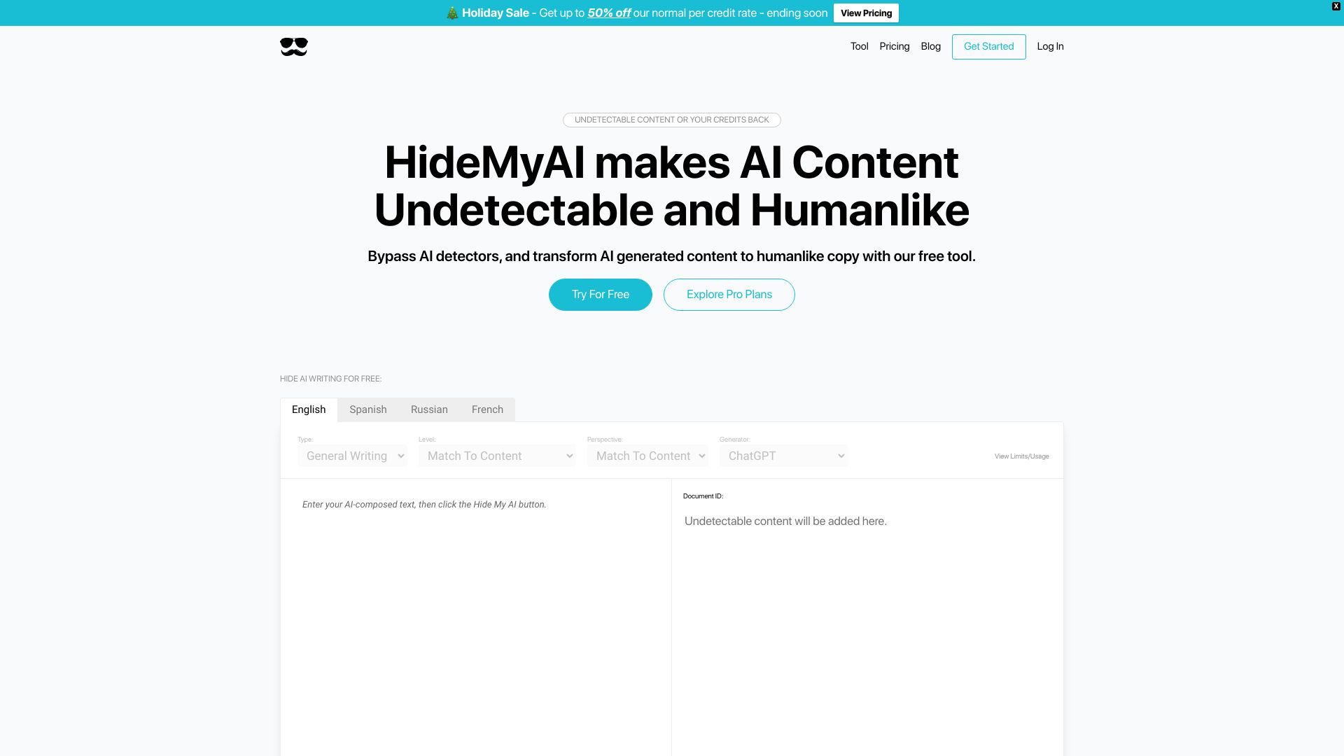 AI content humanizer that makes AI-generated text undetectable by AI detectors.