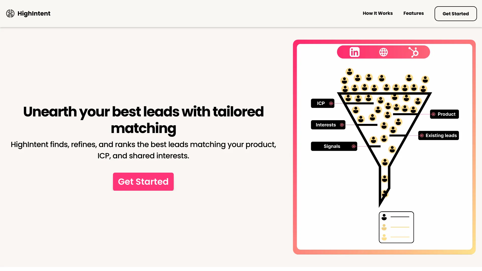 HighIntent finds, refines, and ranks leads matching your product, ICP, and interests.