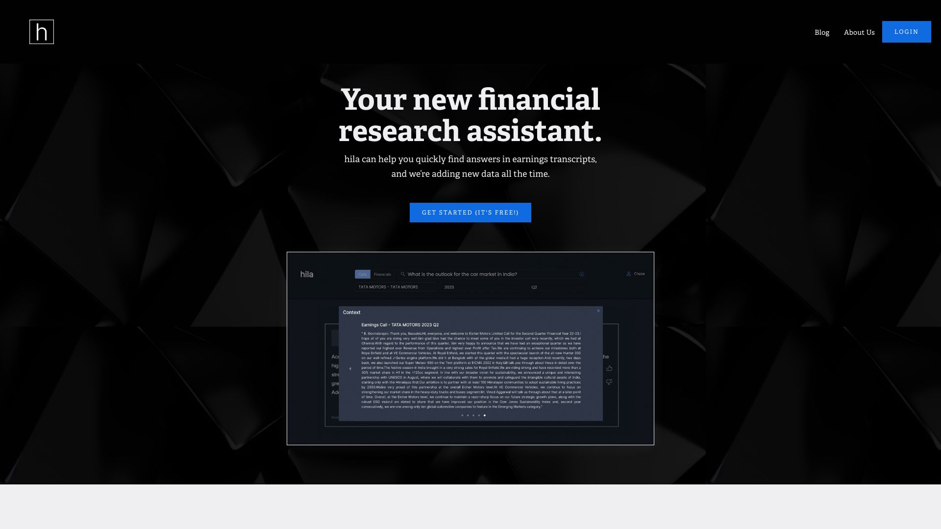 AI research assistant for finance, providing answers to investor questions.
